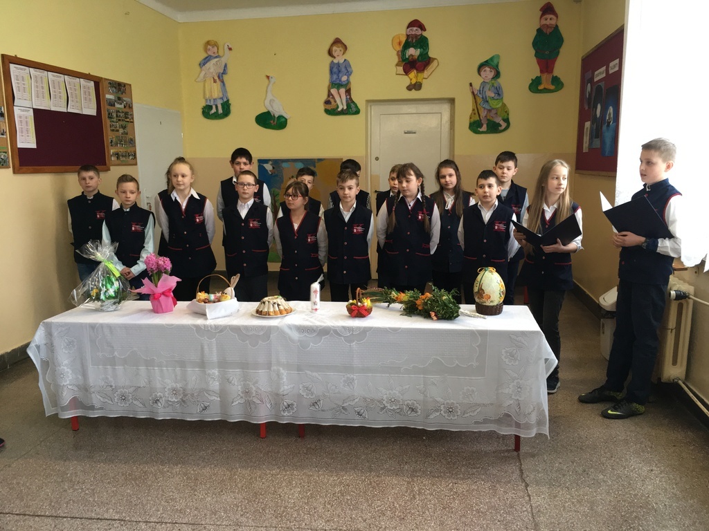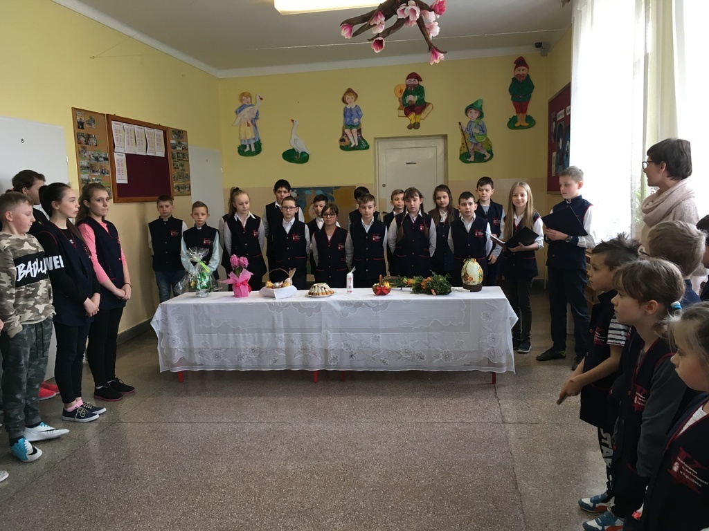 28 marca uczniowie klasy IV i V przygotowali uroczystą akademię z okazji zbliżającej się Wielkanocy. Przypomnieli tradycje i obrzędy związane z tymi świętami. Wielkanoc to najstarsze i najważniejsze święto chrześcijańskie. Upamiętnia zmartwychwstanie Jezusa Chrystusa. Pięknie udekorowany stół podkreślał radosny i wiosenny charakter świąt: pisanki, baranek, wielkanocna baba, palma, święconka w koszyku, bukszpan i kwiaty. Akademia wprowadziła nas w podniosły nastrój świąt.