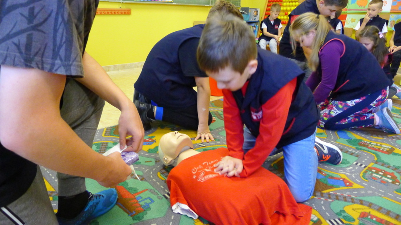 Uczniowie klasy I, II i III oraz trzech kolegów z kl. VIII bili dziś (16 października) rekord w jednoczesnym prowadzeniu resuscytacji krążeniowo – oddechowej! Jesteśmy dumni, że uczymy się jak ratować innym życie!