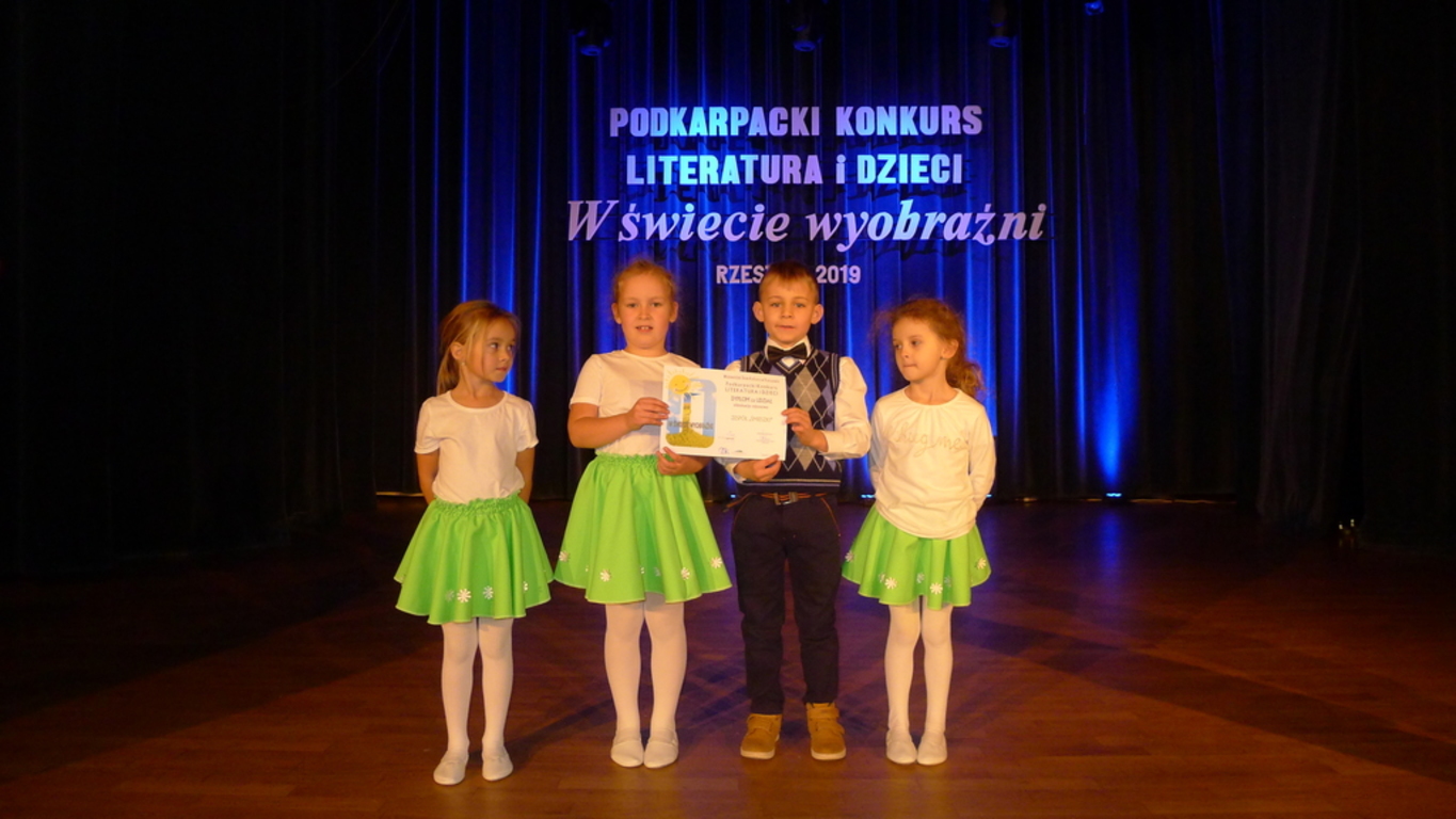 27 listopada w Wojewódzkim Domu Kultury w Rzeszowie odbyły się powiatowe eliminacje Podkarpackiego Konkursu "Literatura i dzieci - W świecie wyobraźni". W kategorii piosenki wystąpili uczniowie naszej szkoły: Aleksandra Sowa z kl. III i zespół "Śmieszki" z kl. I w składzie: Gabriela Cag, Milena Dziepak, Amelia Muciek i Jakub Sowa. Zespół małych artystów wyśpiewał wyróżnienie, zaś Ola zdobyła I nagrodę i otrzymała nominację do udziału w etapie wojewódzkim. 5 grudnia wystąpi ponownie w Rzeszowie. Uczniom gratulujemy wspaniałych występów!