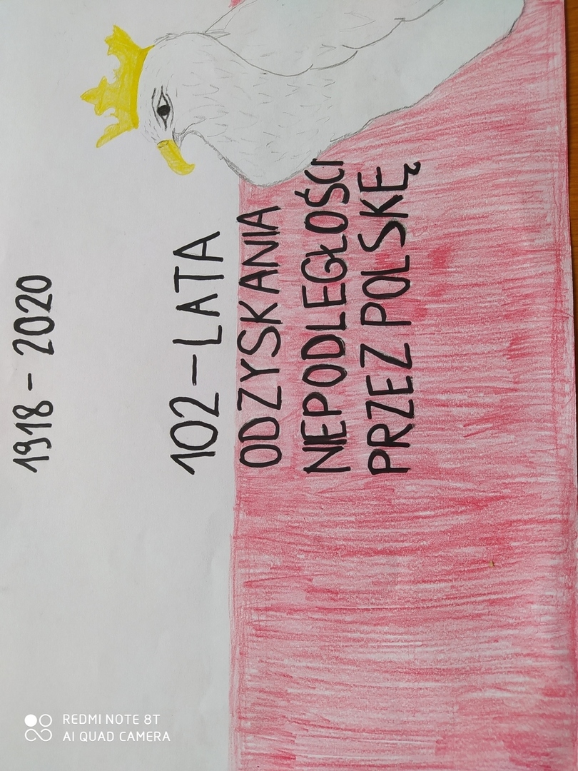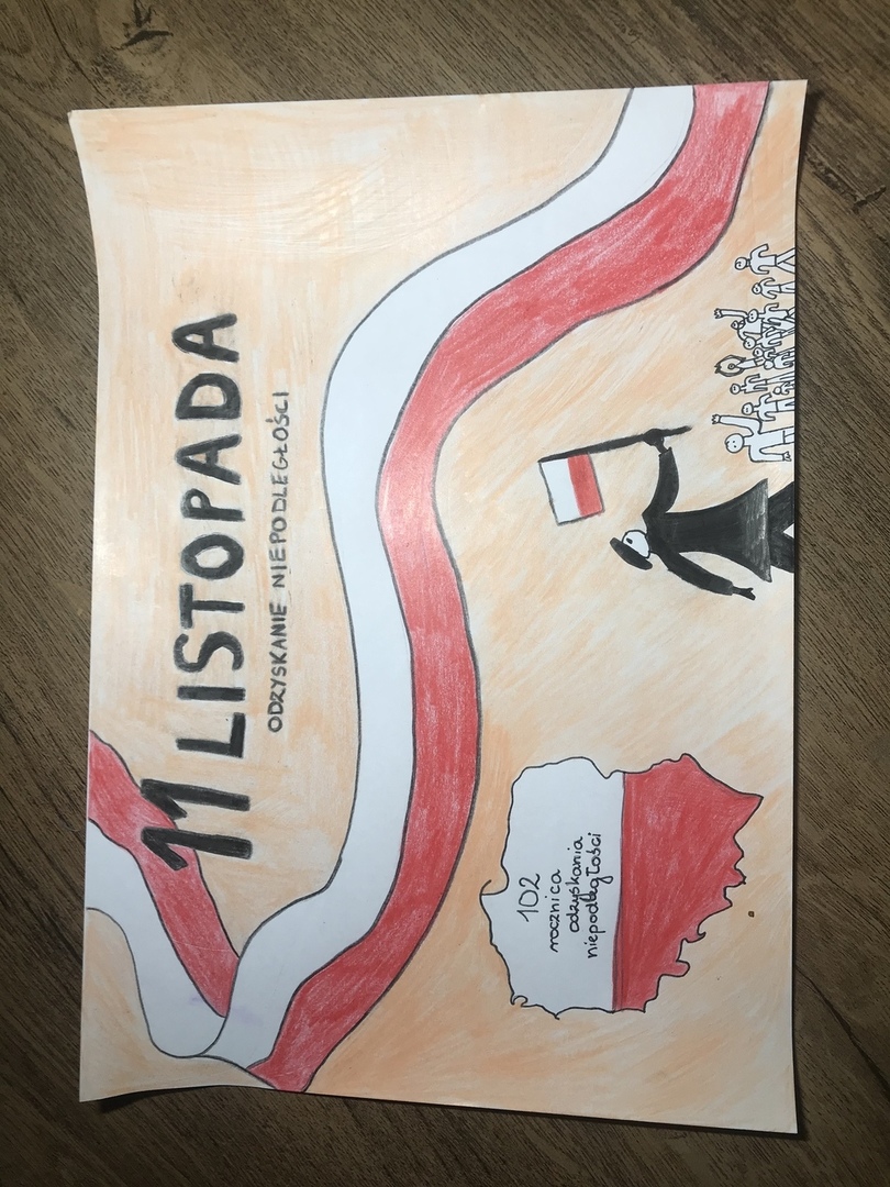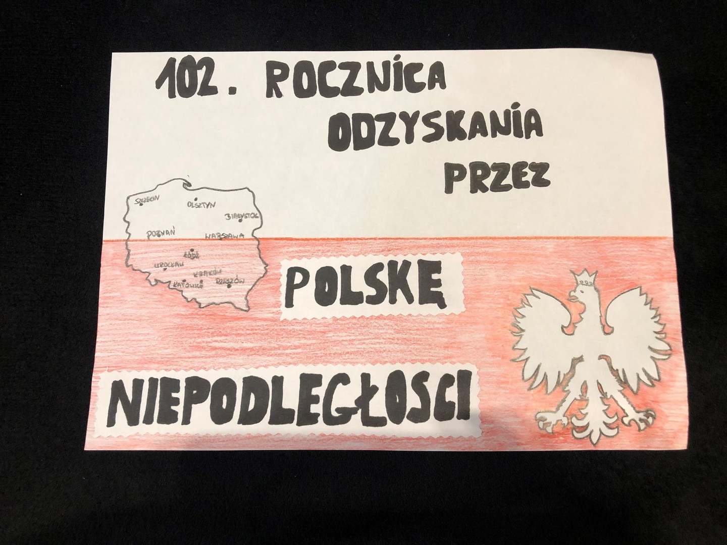 Aby uczcić 102. Rocznicę Odzyskania Niepodległości uczniowie naszej szkoły wykonali prace plastyczne dotyczące Polski i ważnych wydarzeń historycznych.