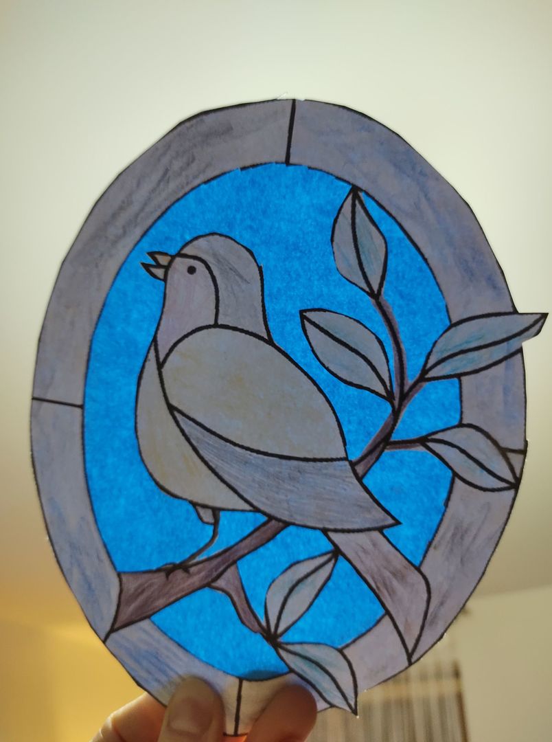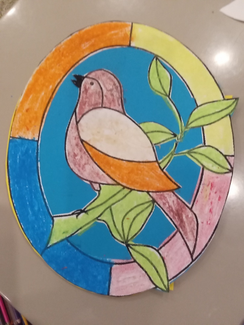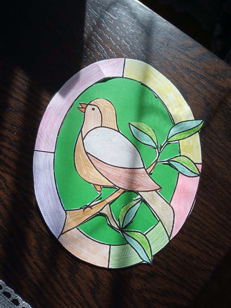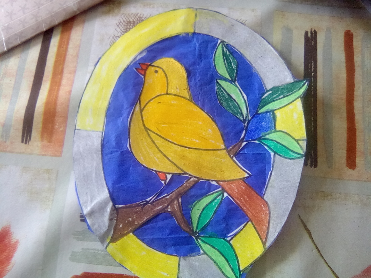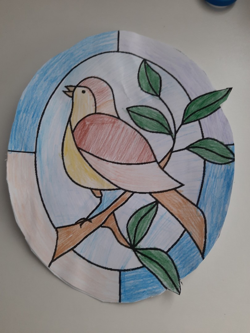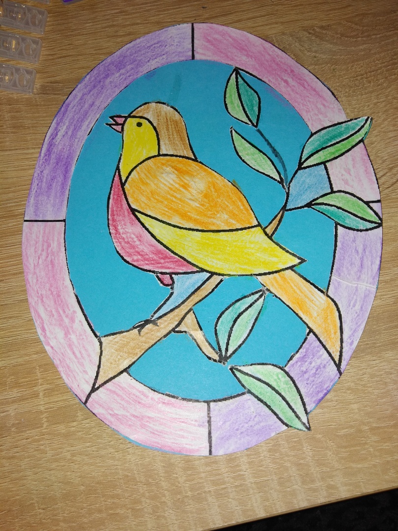 Omawiając zwiastuny wiosny uczniowie kl. II wykonywali na zajęciach takie oto witraże.