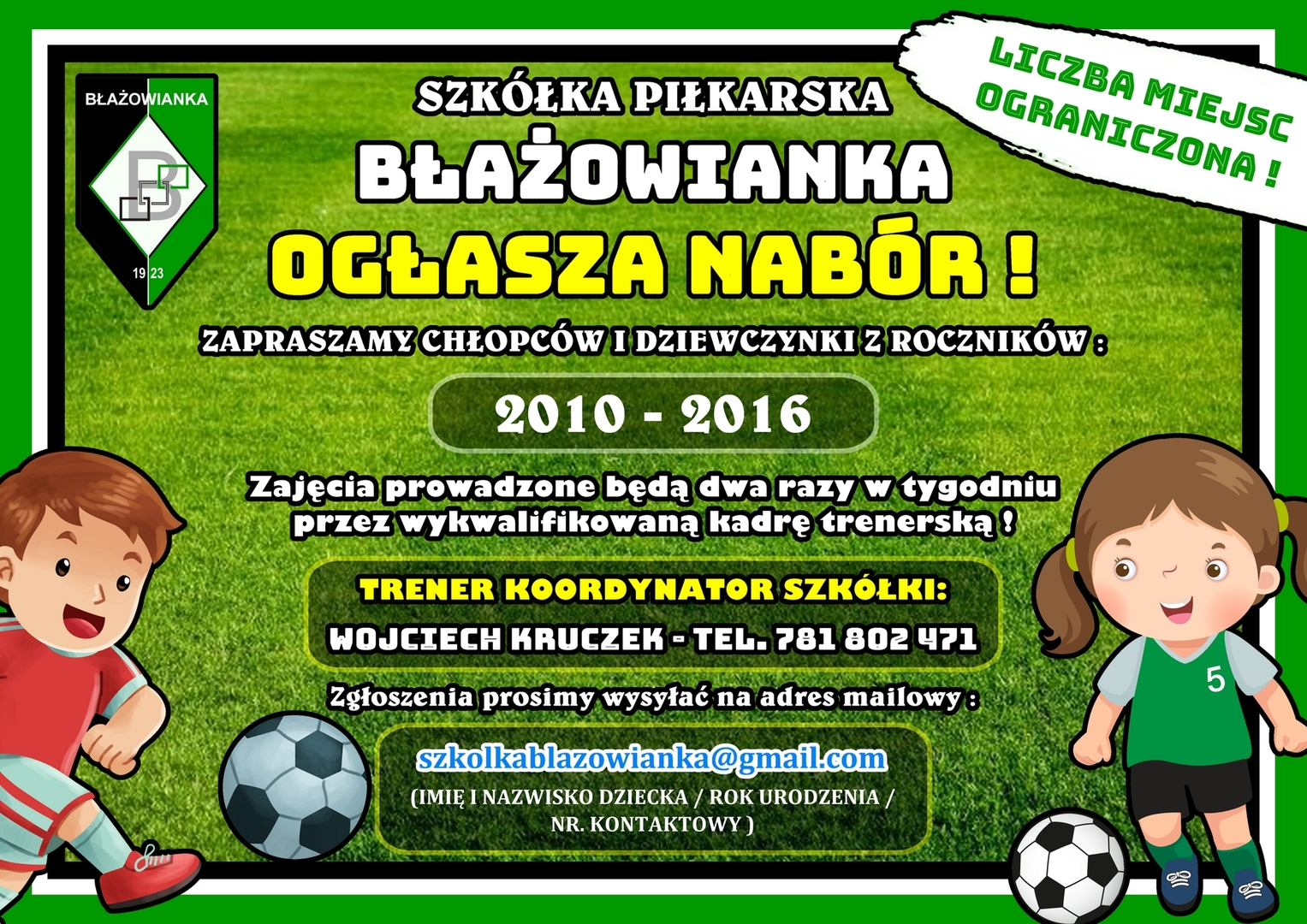 Strona główna Aktualności Nabór do szkółki piłkarskiej...