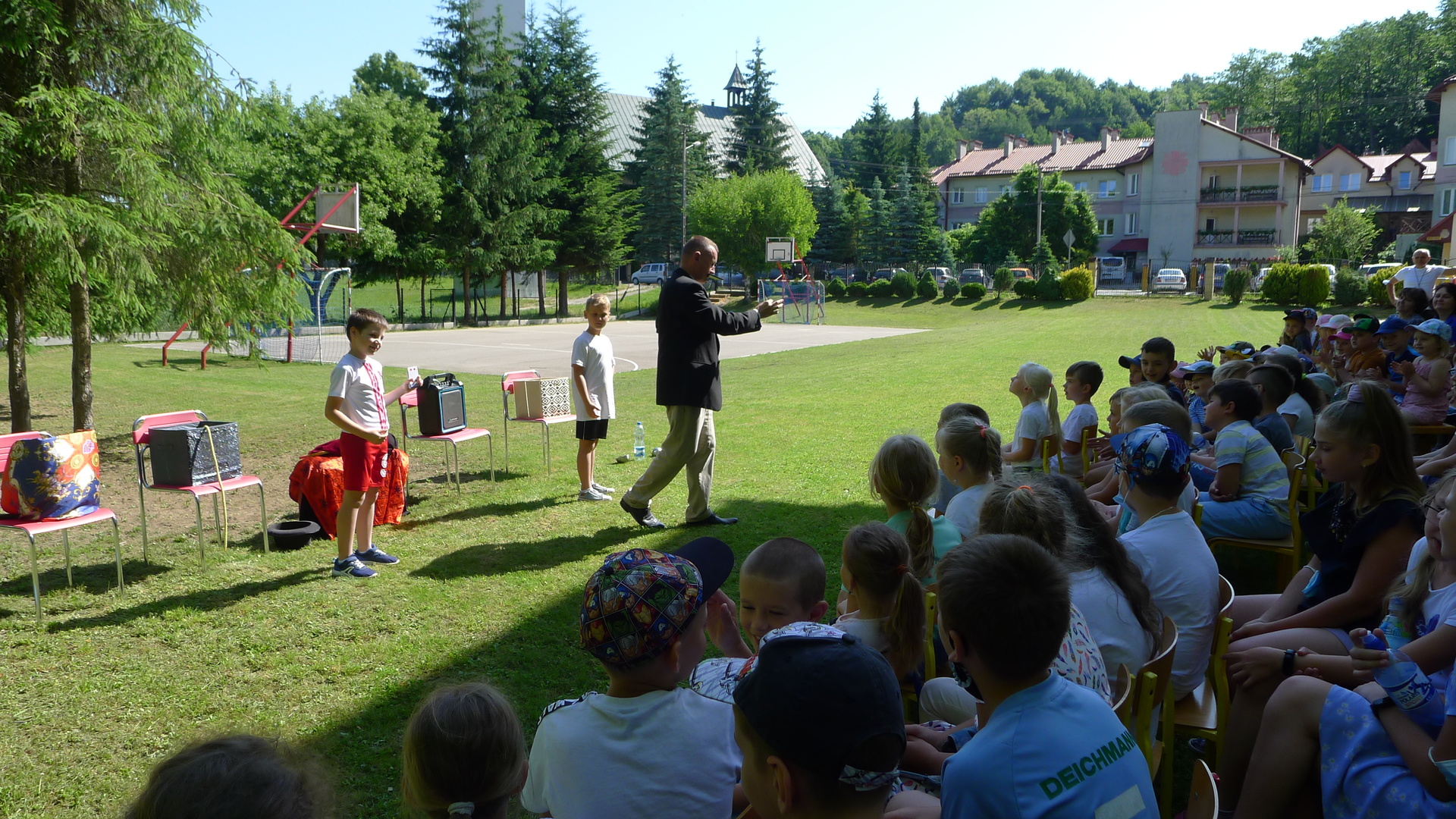 Odwiedziny prawdziwego magika w szkole to wielka atrakcja. 22 czerwca ze swoim programem wystąpił iluzjonista. Zabrał nas do świata czarów i magii. Niektórzy z uczniów mogli wcielić się w rolę małych iluzjonistów. To spotanie dostarczyło nam wiele radości. Było bardzo zabawnie i magicznie.