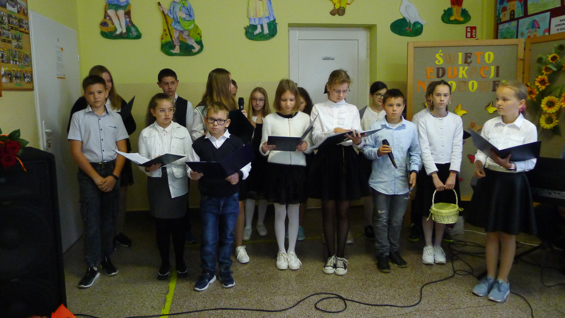 Aby uczcić to święto, uczniowie klas starszych przygotowali uroczystą akademię. Były piękne piosenki, wiersze, kwiaty i symboliczne "ordery" nadawane nauczycielom i personelowi naszej szkoły.