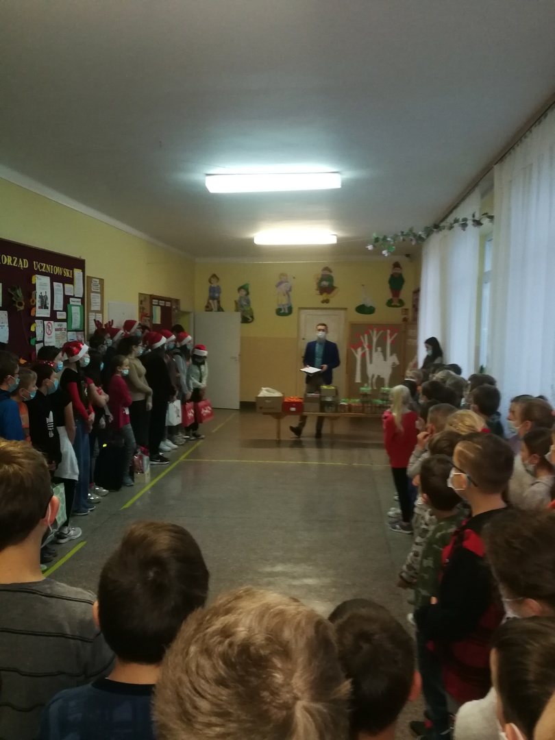 Rankiem, gdy za oknami panowała zimowa aura, naszą szkołę odwiedził św. Mikołaj. Przywiózł worki pełne dobrego humoru i słodyczy. Bardzo się śpieszył, dlatego w jego imieniu prezenty rozdawał pan Dyrektor. Ogromnie cieszymy się z wizyty Mikołaja i zapraszamy go ponownie.