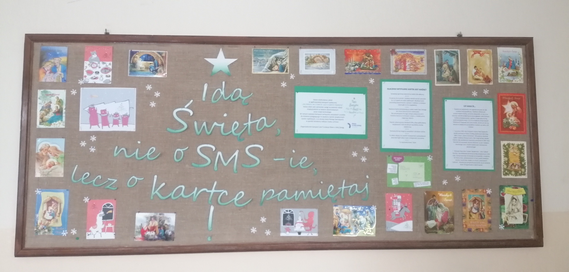 Nasza szkoła włączyła się do ogólnopolskiej kampanii społecznej „IDĄ ŚWIĘTA, NIE O SMS-IE, LECZ O KARTCE PAMIĘTAJ” organizowanej przez Fundację Dbam o Mój Zasięg.