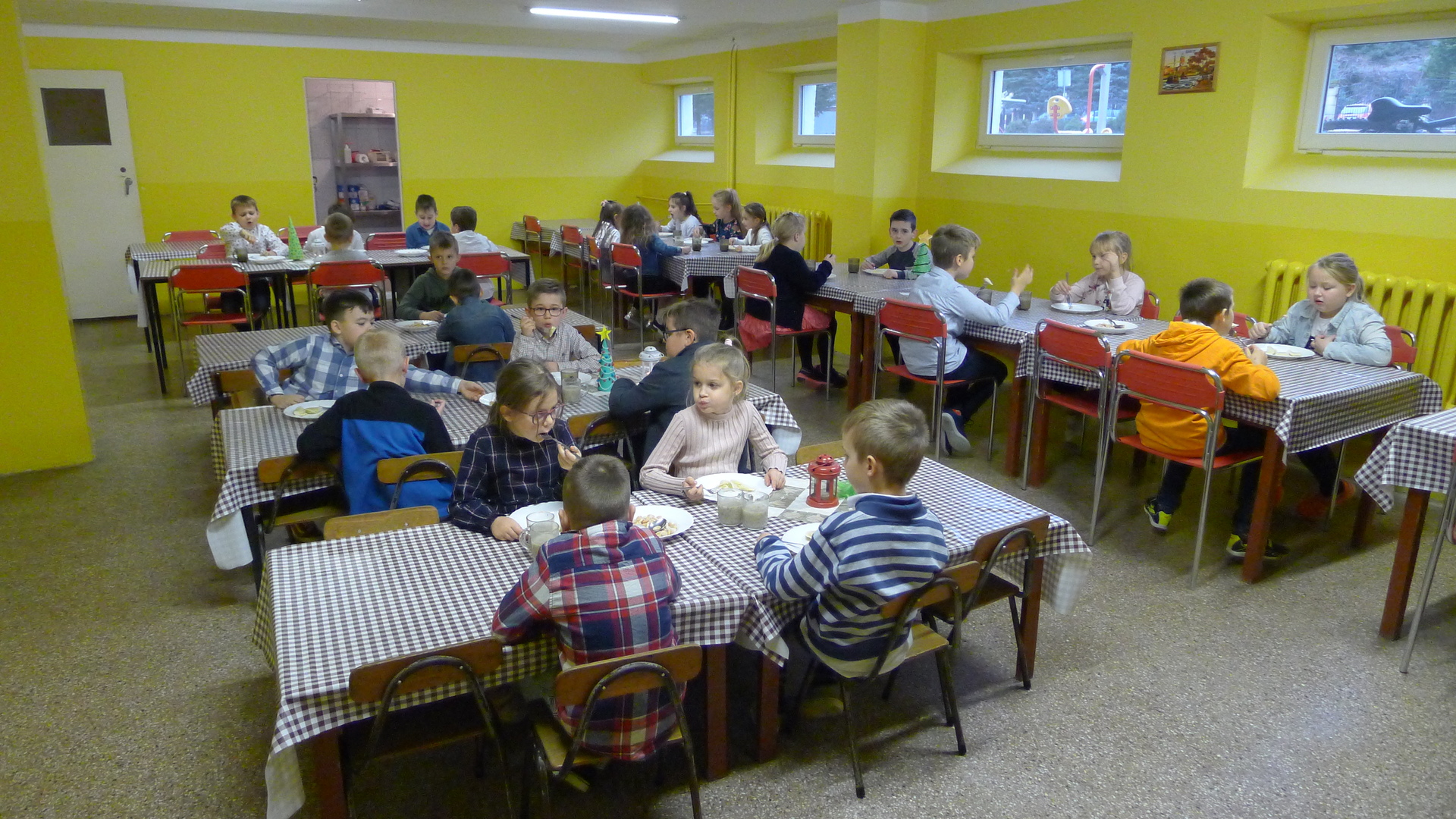 Stało się tradycją, że w ostatni dzień nauki szkolnej przed zimową przerwą świąteczną, urządzamy w naszej szkole uroczystą Wigilię. W tym roku, ze względu na naukę zdalną, to świąteczne wigilijne spotkanie odbyło się 17 grudnia. Z zachowaniem pandemicznych środków bezpieczeństwa spotkaliśmy się, aby wspólnie zjeść pyszny posiłek, złożyć sobie bożonarodzeniowe życzenia i zaśpiewać kolędy.