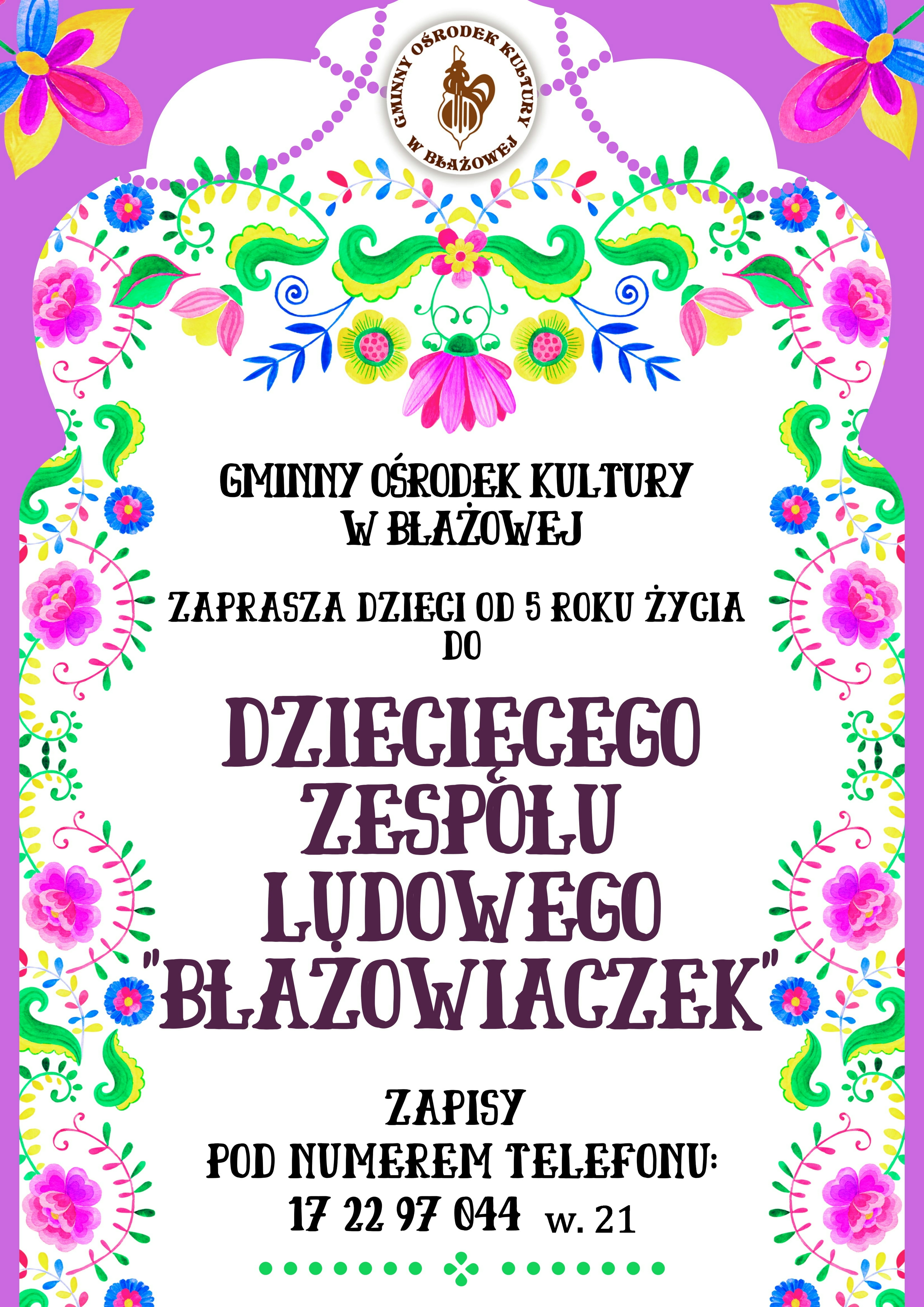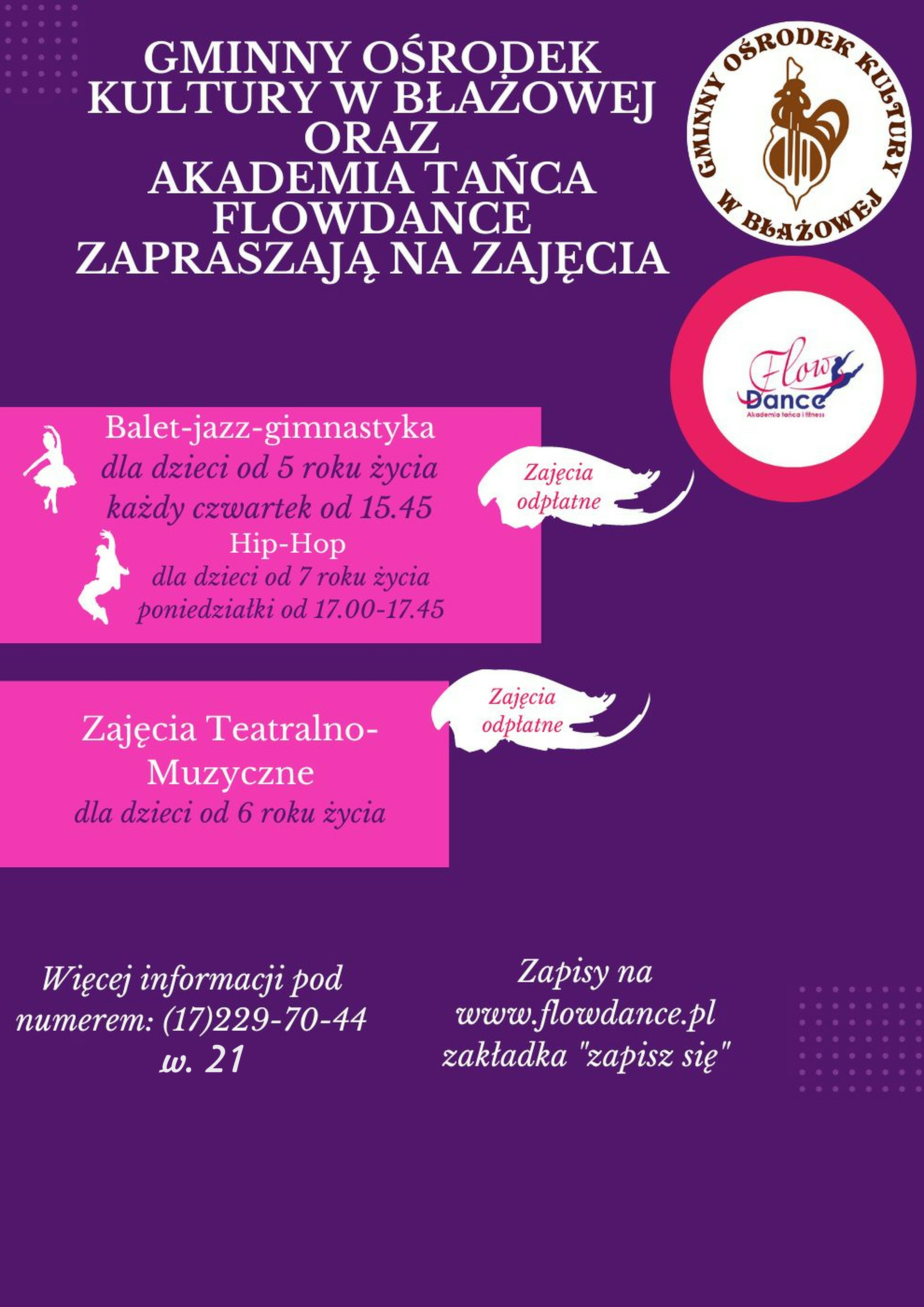 Na prośbę Gminnego Ośrodka Kultury w Błażowej zamieszczamy informacje dotyczące organizowanych zajęć stałych.