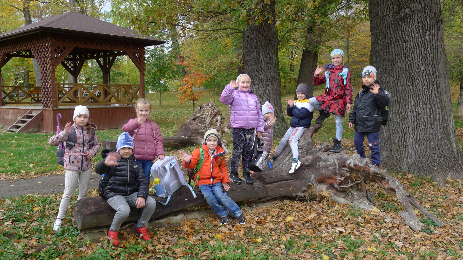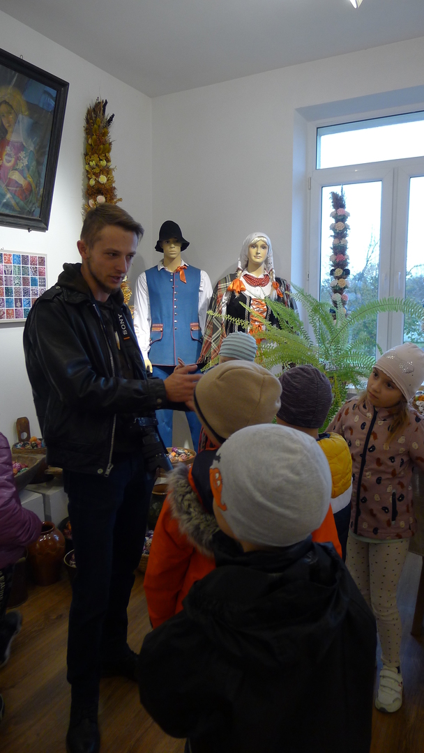 Po pysznym posiłku był czas na mały spacer po błażowskim parku. Następnie pierwszoklasiści mieli okazję podziwiać eksponaty znajdujące się w Muzeum Pisanki. Przypominamy, że muzeum znajduje się w Gminnym Ośrodku Kultury w Błażowej i wystawiane są w nim pisanki wykonane różnymi technikami.