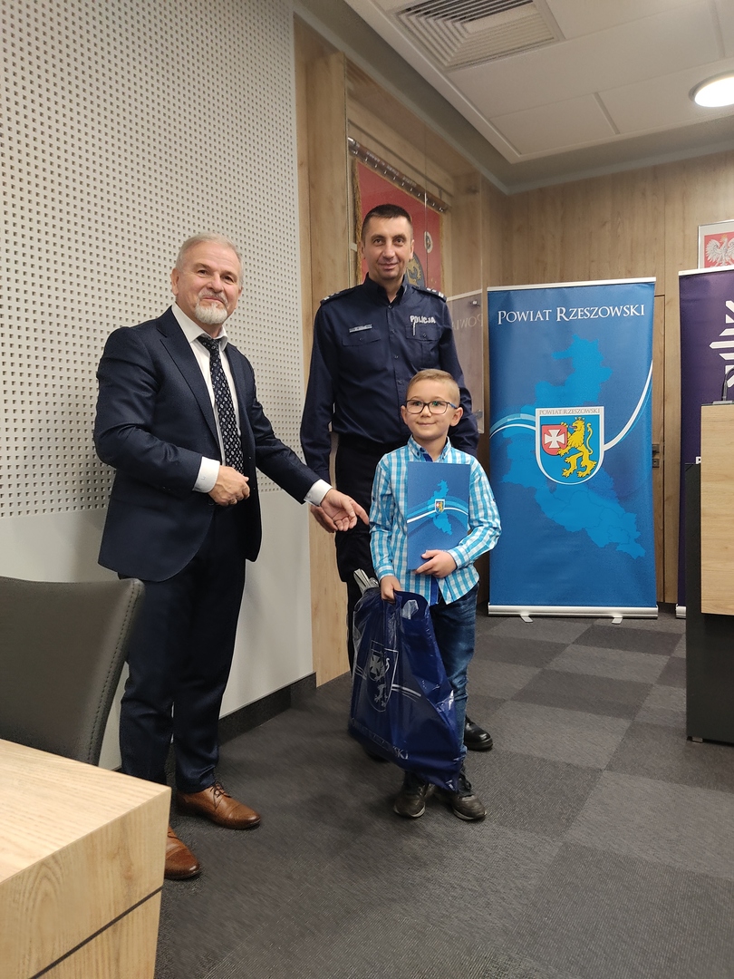 W środę – 7 grudnia 2022r., w siedzibie Powiatowego Ośrodka Dokumentacji Geodezyjnej i Kartograficznej odbyła się uroczystość wręczenia nagród laureatom konkursu przez Wicestarostę Rzeszowskiego Marka Sitarza oraz Zastępcę Komendanta Miejskiego Policji w Rzeszowie mł. insp. Wacława Sudoła.