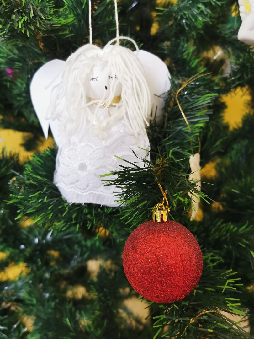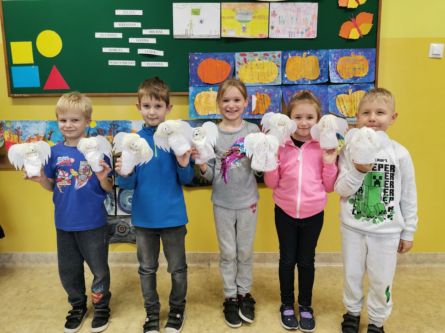 Natomiast 28 listopada odbyła się lekcja otwarta dla rodziców. Uczniowie podczas ed. plastycznej wykonywali aniołki z butelek, piłeczek, koronek, włóczki i kartonu. Przy łączeniu materiałów klejem na gorąco pomagali rodzice. Dziękujemy im za przybycie na zajęcia i za pomoc. Aniołki zdobią teraz klasową choinkę.
