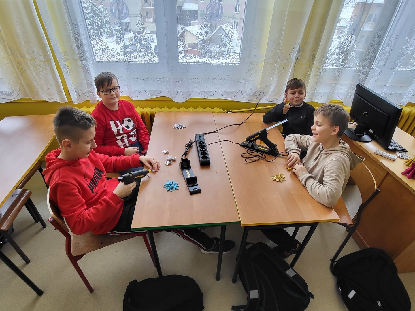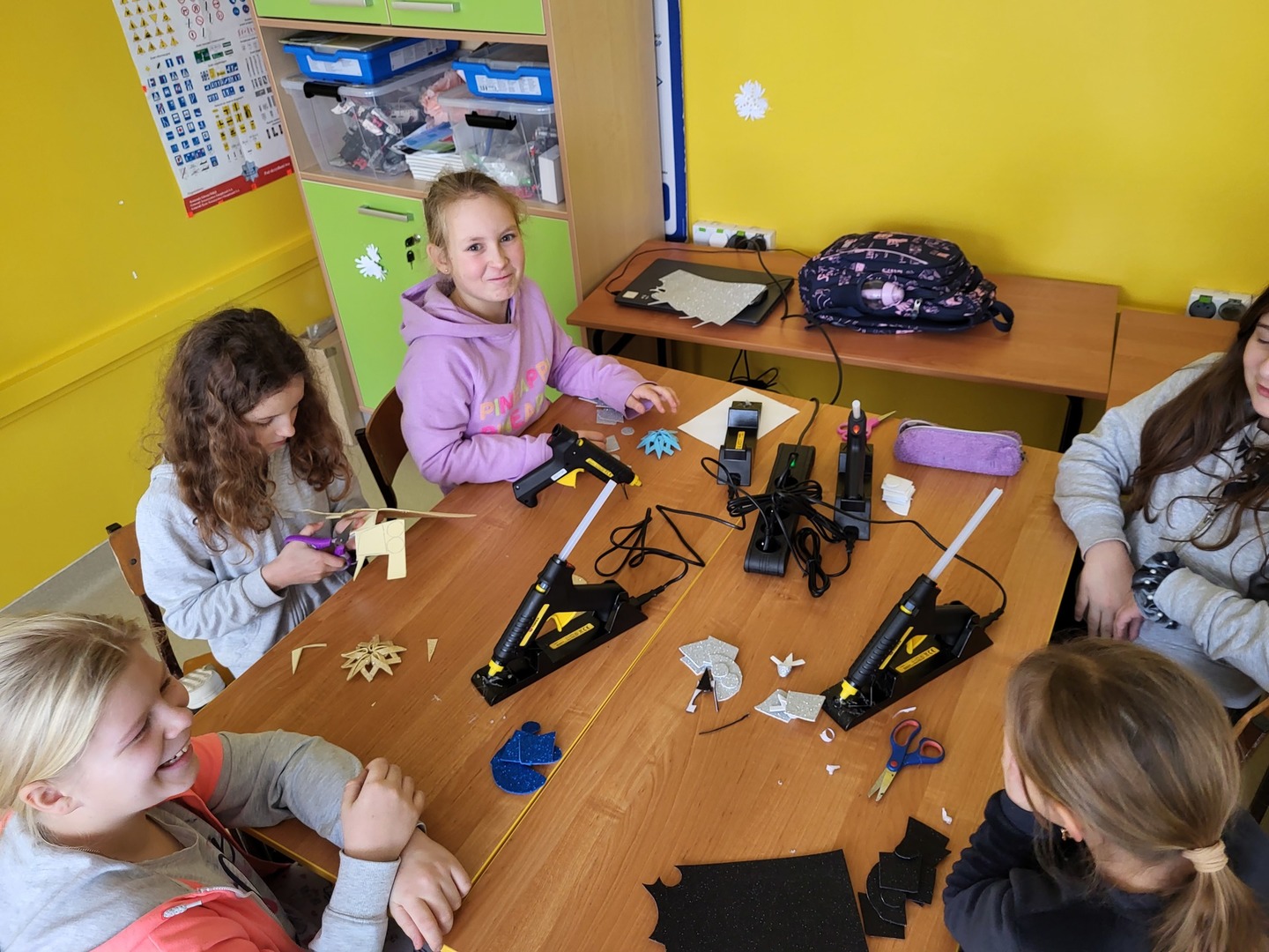 Gąbka dekoracyjna, nożyczki oraz klej na gorąco i mamy własnoręcznie wykonane ozdoby choinkowe w ramach Laboratoriów Przyszłości.