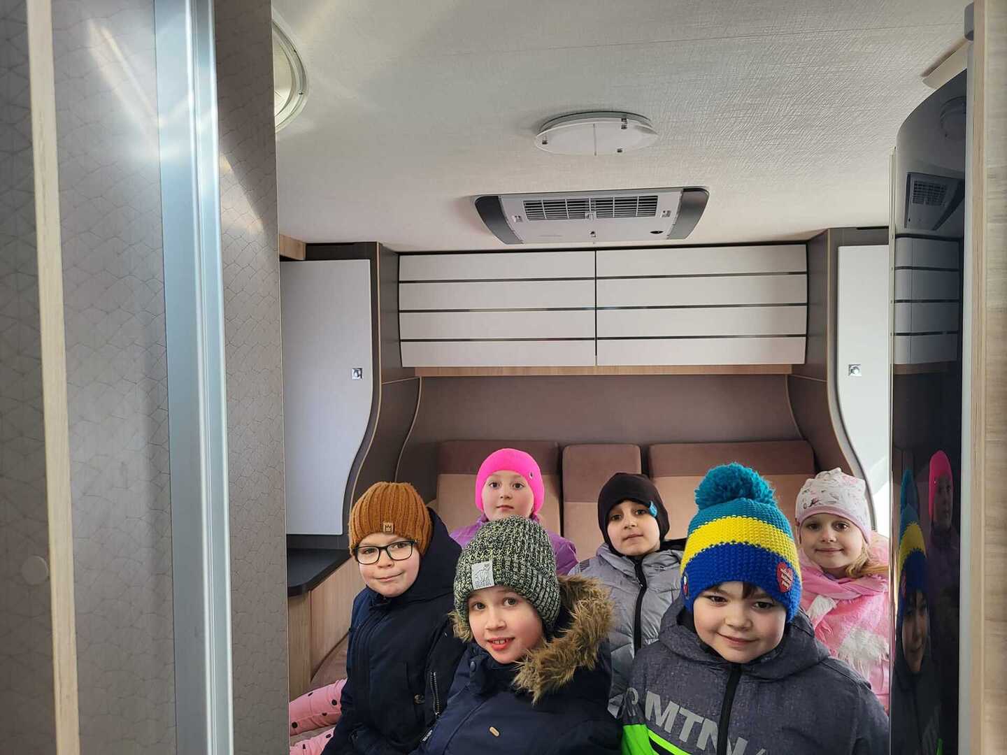 Dzieci z ogromnym zaciekawieniem oglądały ukryte zakamarki kampera. Była radość, uśmiech i ogromna ekscytacja.