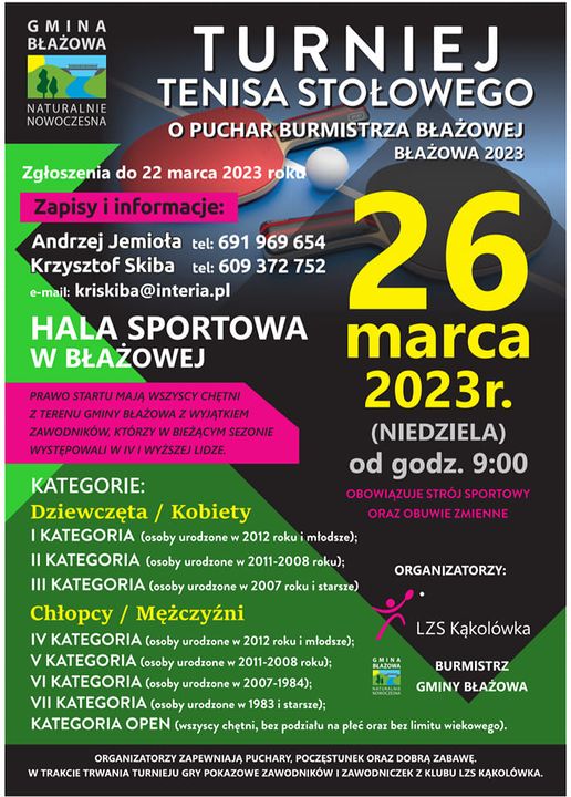 • Turniej Tenisa Stołowego o Puchar Burmistrza...