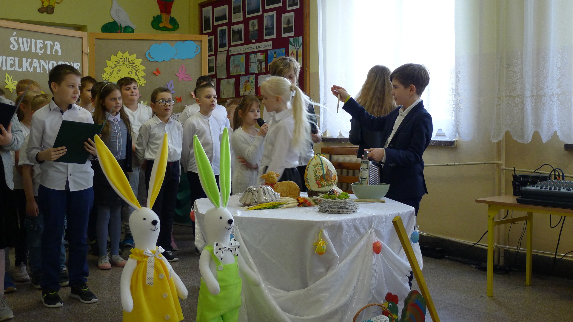 Święta Wielkanocne już blisko. Uczniowie klasy III przygotowali uroczysty apel, podczas którego przypomnieli najważniejsze zwyczaje i obrzędy związane z Wielkanocą. Podziękowania należą się również uczniom klasy I i II. Wspomagali bowiem starszych kolegów podczas śpiewania świątecznych piosenek. Dziękujemy za piękny program, piosenki, dekoracje i wprowadzenie świątecznego nastroju!