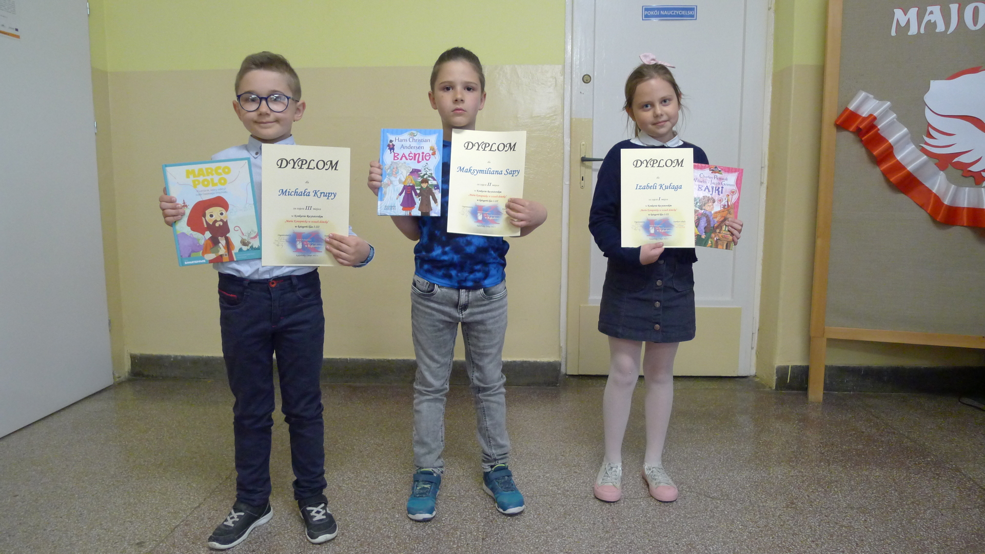 W kategorii młodszej (klasy I - III) wystąpiło 11. recytatorów. Pierwsze miejsce zajęła Izabela Kułaga z kl. II, drugie miejsce zdobył Maksymilian Sapa z kl. I, a trzecią lokatę osiągnął Michał Krupa z kl. II.