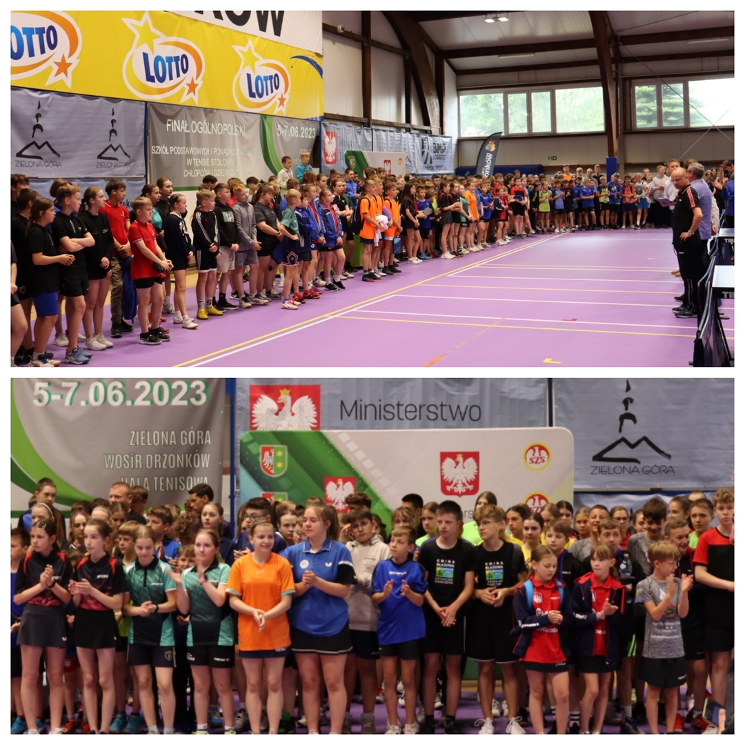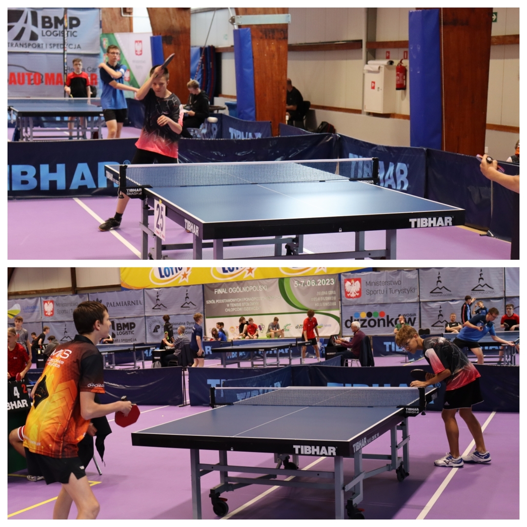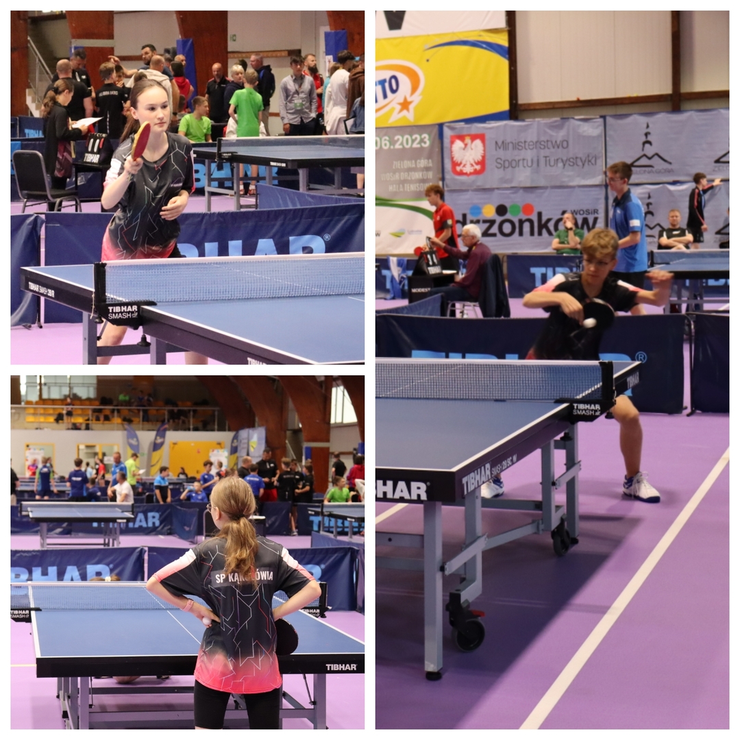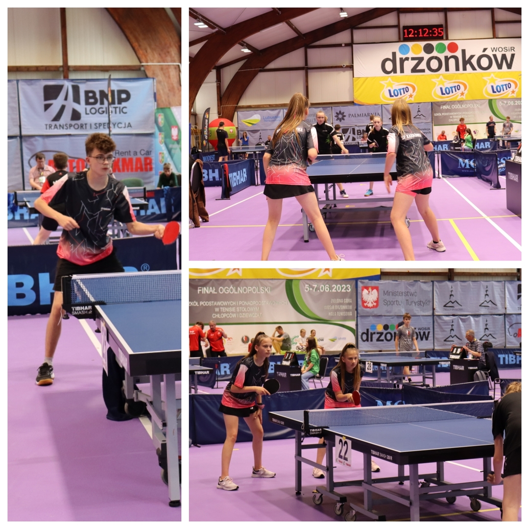 W dniach 5-7 czerwca 2023 r. w WOSiR Drzonków - Zielona Góra odbyły sie Mistrzostwa Polski Szkolnego Związku Sportowego w Igrzyskach Dzieci i Igrzyskach Młodzieży Szkolnej w tenisie stołowym. We wszystkich kategoriach wystąpiło aż 78 szkolnych reprezentacji. Wśród nich znalazły się 3 nasze, które wywalczyły sobie prawo startu w finałach wojewódzkich. W pierwszej fazie rozgrywki odbywały się w systemie grupowym. Nasi podopieczni spisali się świetnie i wszyscy awansowali do fazy pucharowej. Drużyna dziewcząt w kategorii ID pierwszej i jedynej porażki w turnieju doznała dopiero w meczu ćwierćfinałowym, w którym ulegliśmy późniejszym brązowym medalistkom PSP Zgłobice. W kolejnych meczach dziewczyny pokonały rywalki z SP Pisanica oraz SP 4 Zielona Góra. Tym samym uplasowały się na wysokim 5 miejscu. Blisko ich osiągnięcia byli również nasi chłopcy, którzy w meczu o 5 miejsce w kategorii IMS po zaciętej walce ulegli drużynie KSP Olsztyn zajmując 6 miejsce w turnieju. Drużyna dziewcząt w kategorii IMS także dzielnie walczyła w fazie pucharowej. Porażka w meczu o awans do ósemki z SP 3 Pabianice spowodowała, że pozostała nam walka o niższe lokaty. Dziewczyny wywalczyły 11 miejsce.
