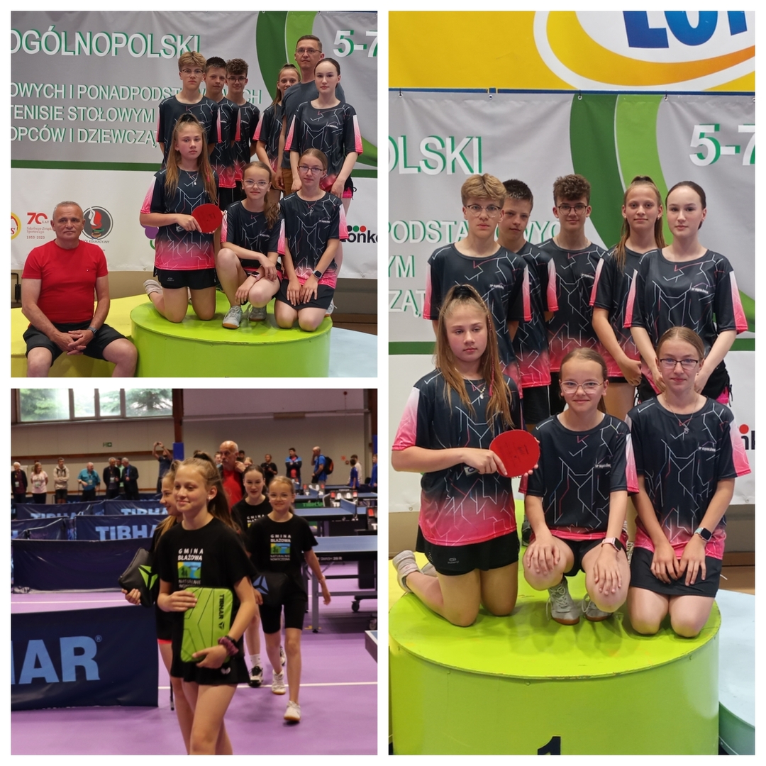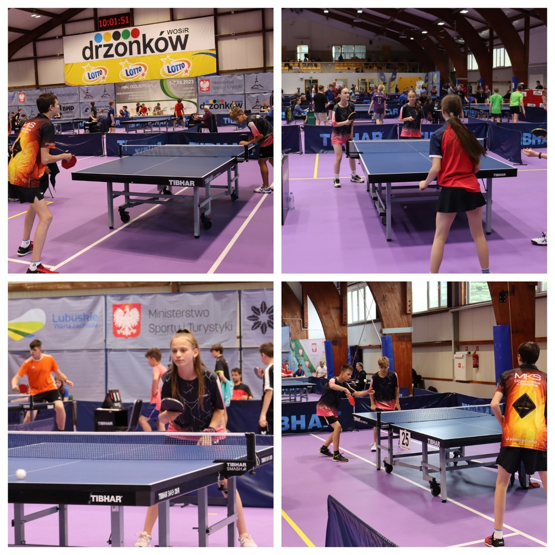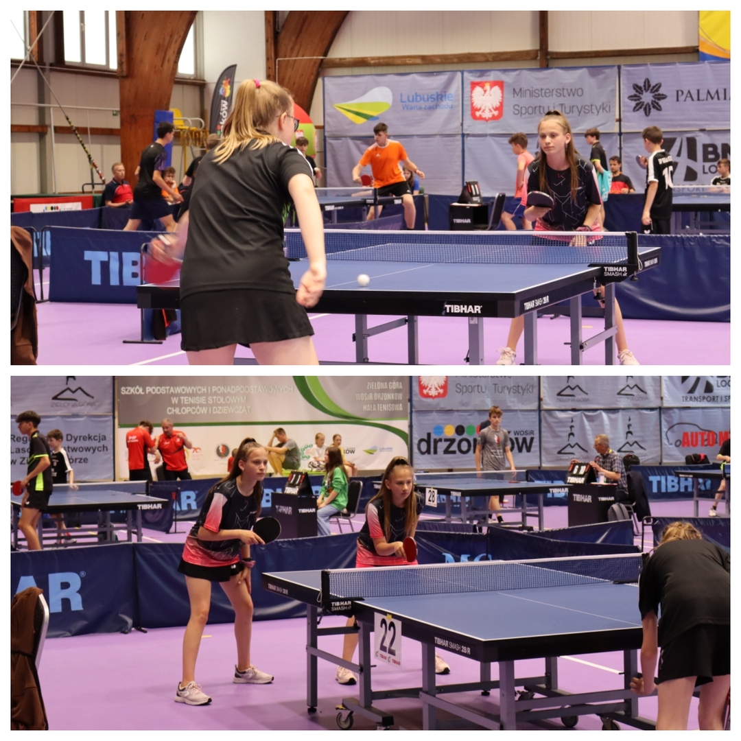 W dniach 5-7 czerwca 2023 r. w WOSiR Drzonków - Zielona Góra odbyły sie Mistrzostwa Polski Szkolnego Związku Sportowego w Igrzyskach Dzieci i Igrzyskach Młodzieży Szkolnej w tenisie stołowym. We wszystkich kategoriach wystąpiło aż 78 szkolnych reprezentacji. Wśród nich znalazły się 3 nasze, które wywalczyły sobie prawo startu w finałach wojewódzkich. W pierwszej fazie rozgrywki odbywały się w systemie grupowym. Nasi podopieczni spisali się świetnie i wszyscy awansowali do fazy pucharowej. Drużyna dziewcząt w kategorii ID pierwszej i jedynej porażki w turnieju doznała dopiero w meczu ćwierćfinałowym, w którym ulegliśmy późniejszym brązowym medalistkom PSP Zgłobice. W kolejnych meczach dziewczyny pokonały rywalki z SP Pisanica oraz SP 4 Zielona Góra. Tym samym uplasowały się na wysokim 5 miejscu. Blisko ich osiągnięcia byli również nasi chłopcy, którzy w meczu o 5 miejsce w kategorii IMS po zaciętej walce ulegli drużynie KSP Olsztyn zajmując 6 miejsce w turnieju. Drużyna dziewcząt w kategorii IMS także dzielnie walczyła w fazie pucharowej. Porażka w meczu o awans do ósemki z SP 3 Pabianice spowodowała, że pozostała nam walka o niższe lokaty. Dziewczyny wywalczyły 11 miejsce.