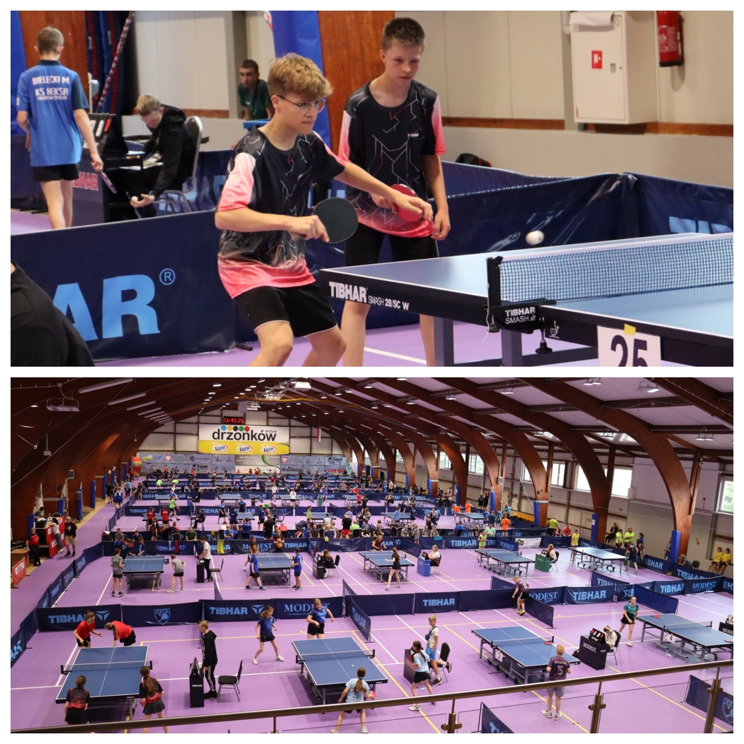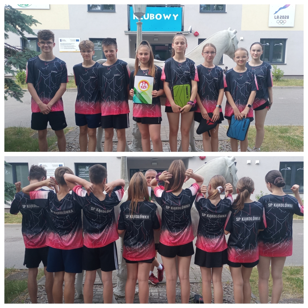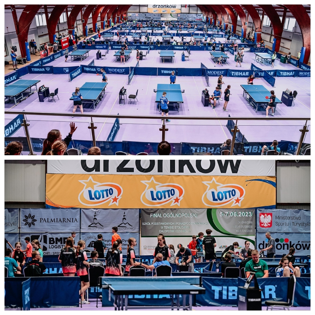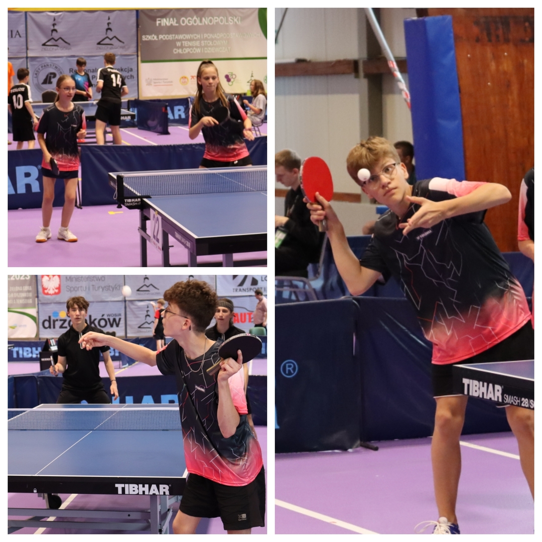 W dniach 5-7 czerwca 2023 r. w WOSiR Drzonków - Zielona Góra odbyły sie Mistrzostwa Polski Szkolnego Związku Sportowego w Igrzyskach Dzieci i Igrzyskach Młodzieży Szkolnej w tenisie stołowym. We wszystkich kategoriach wystąpiło aż 78 szkolnych reprezentacji. Wśród nich znalazły się 3 nasze, które wywalczyły sobie prawo startu w finałach wojewódzkich. W pierwszej fazie rozgrywki odbywały się w systemie grupowym. Nasi podopieczni spisali się świetnie i wszyscy awansowali do fazy pucharowej. Drużyna dziewcząt w kategorii ID pierwszej i jedynej porażki w turnieju doznała dopiero w meczu ćwierćfinałowym, w którym ulegliśmy późniejszym brązowym medalistkom PSP Zgłobice. W kolejnych meczach dziewczyny pokonały rywalki z SP Pisanica oraz SP 4 Zielona Góra. Tym samym uplasowały się na wysokim 5 miejscu. Blisko ich osiągnięcia byli również nasi chłopcy, którzy w meczu o 5 miejsce w kategorii IMS po zaciętej walce ulegli drużynie KSP Olsztyn zajmując 6 miejsce w turnieju. Drużyna dziewcząt w kategorii IMS także dzielnie walczyła w fazie pucharowej. Porażka w meczu o awans do ósemki z SP 3 Pabianice spowodowała, że pozostała nam walka o niższe lokaty. Dziewczyny wywalczyły 11 miejsce.