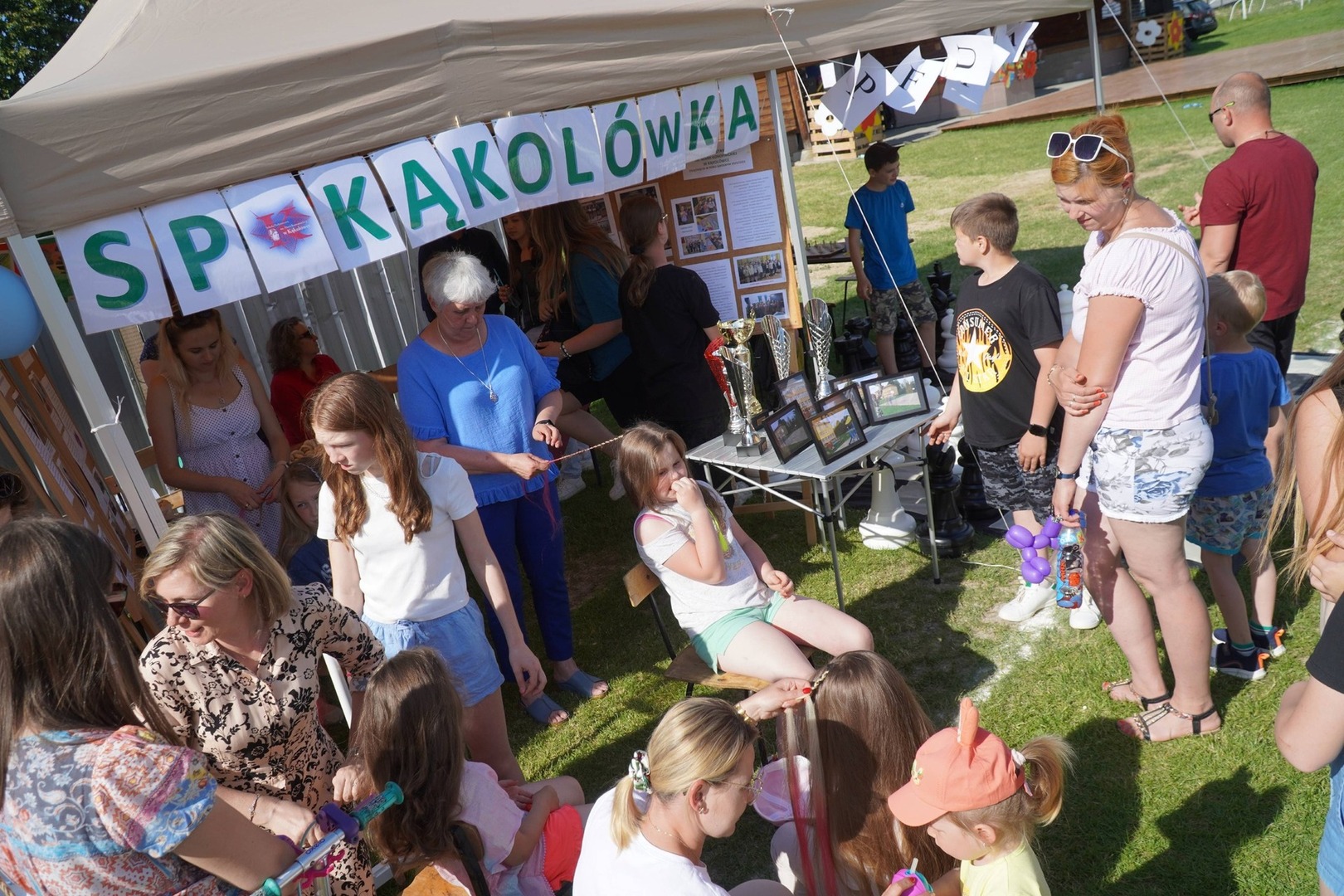 4 czerwca 2023 r. w Błażowej odbył się Gminny Dzień Dziecka. Nasza szkoła zorganizowała stoisko, na którym zaprezentowane zostały osiągnięcia uczniów w bieżącym roku szkolnym. Na scenie zaprezentowała się liczna grupa naszych uczniów, którzy pięknie wykonali piosenki. Nasze Panie zaplatały wszystkim chętnym kolorowe warkoczyki. Ponadto każdy mógł skosztować pyszności i smakołyków przygotowanych przez naszych nauczycieli. Dzieci mogły również skorzystać z licznych atrakcji w postaci dmuchańców, karuzeli czy zabaw z animatorem.