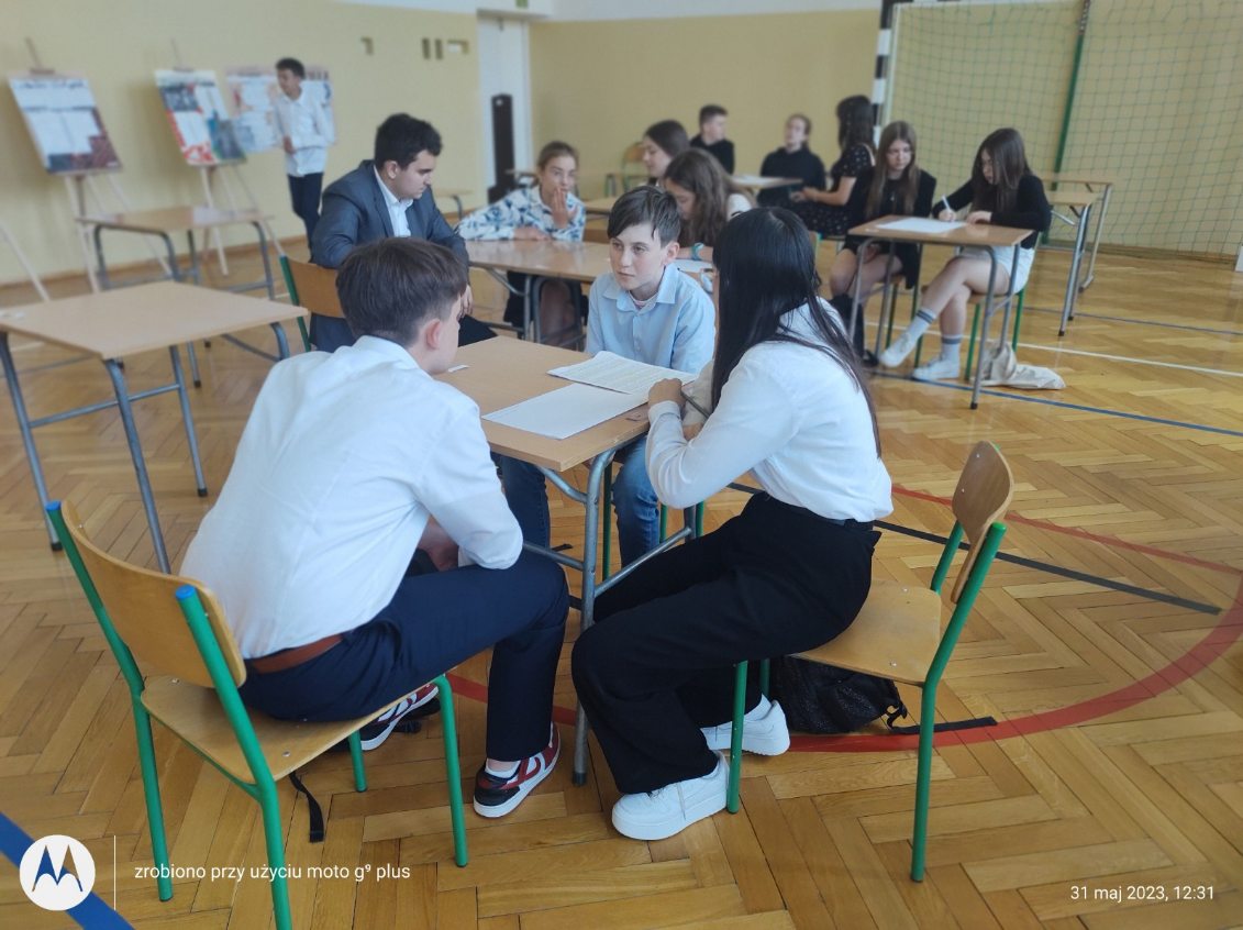 31 maja nasi uczniowie wzięli udział w Międzyszkolnym Konkursie Literackim "Tak jest zgoda, a Bóg wtedy rękę poda - w świecie bohaterów Aleksandra Fredry", który został objęty honorowym patronatem Podkarpackiego Kuratora Oświaty. W Chmielniku naszą szkołę reprezentowali uczniowie klasy VII: Aleksandra Groszek, Szymon Chuchla i Sebastian Jakubczyk. Szymon za swoją wiedzę o życiu i twórczości Aleksandra Fredry otrzymał wyróżnienie. Serdecznie gratulujemy i życzymy dalszych sukcesów!