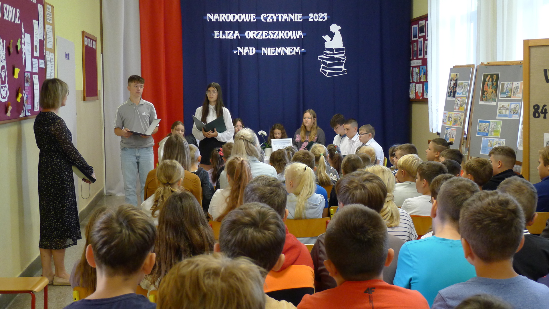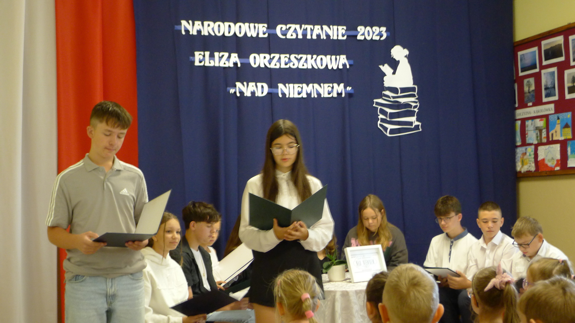 Uczniowie naszej szkoły włączyli się do tej pięknej akcji. 11 września mogliśmy wysłuchać fragmentów "Nad Niemnem" czytanych przez chętnych uczniów z kl. V, VII i VIII.