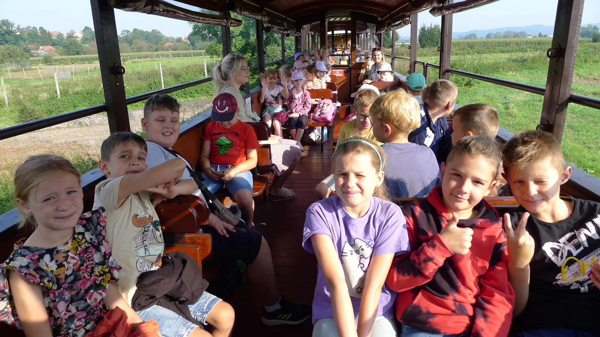 Wczesnym rankiem 12 września, uczniowie naszej szkoły zebrali się przed szkołą. Czekały tu na nich 2 autokary, którymi wyruszyli do Dynowa. Tam przesiedli się na kolejkę wąskotorową „Pogórzanin”. Piękna pogoda umożliwiła podziwianie krajobrazu Pogórza Dynowskiego. Największe emocje towarzyszyły uczniom podczas przejazdu przez najdłuższy w Europie tunel dla kolejek wąskotorowych. Z zainteresowaniem obserwowali też w Jaworniku Polskim przepinanie lokomotywy. Podczas powrotu kolejki do Dynowa zaplanowany został 2-u godzinny postój, który został wykorzystany na zabawy przy muzyce, kalambury, gry w piłkę, zabawy z chustą, malowanie, tory przeszkód i ścieżkę muzyczną. W doskonałych humorach uczniowie wrócili do szkoły i jeszcze długo będą wspominać ten wyjątkowy wyjazd.
