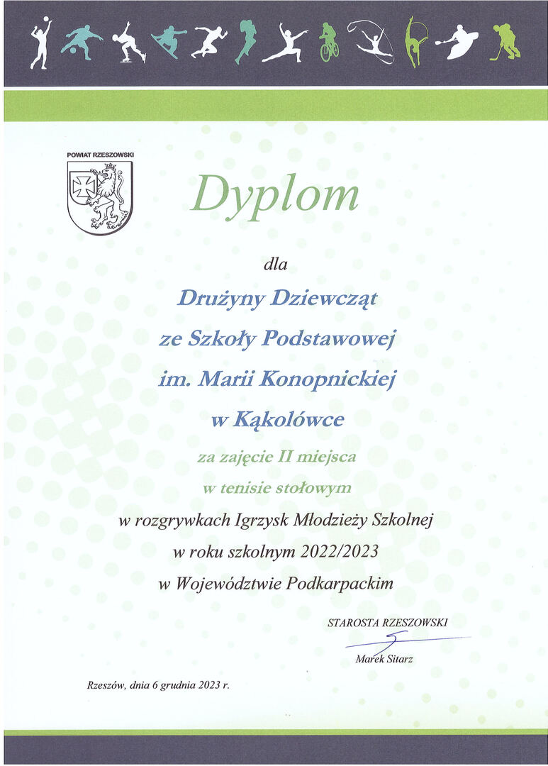 6 grudnia 2023 r. Starostwo Powiatowe w Rzeszowie zorganizowało Podsumowanie Współzawodnictwa Sportowego Dzieci i Młodzieży za rok szkolny 2022/2023 w Powiecie Rzeszowskim. Na spotkaniu zostali uhonorowani młodzi sportowcy, wyróżniający się nauczyciele wychowania fizycznego, najlepsze szkoły oraz gminy, które w rozgrywkach Szkolnego Związku Sportowego osiągnęły znaczące wyniki sportowe.