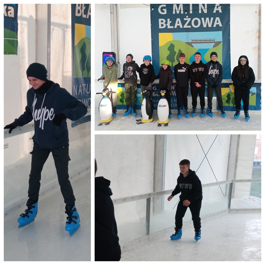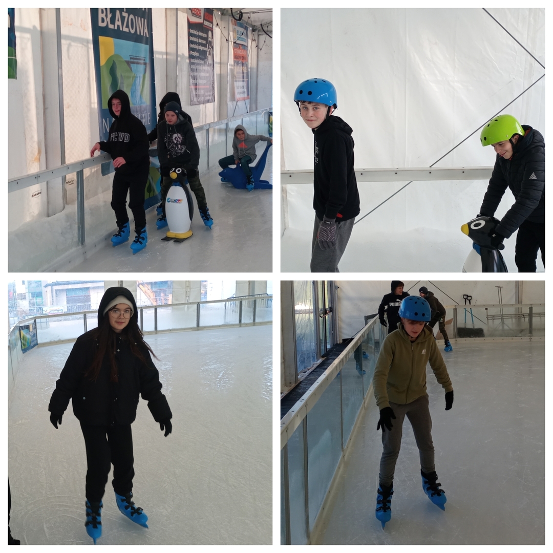 Uczniowie klasy 8 w ramach lekcji wychowania fizycznego udali się do Błażowej na kryte lodowisko. Dla większości uczniów była to pierwsza wizyta na tym lodowisku. Uczniowie bardzo szybko oswoili się z taflą i opanowali podstawy jazdy na łyżwach. Wszyscy wróciliśmy zmęczeni ale zadowoleni z wyjazdu.