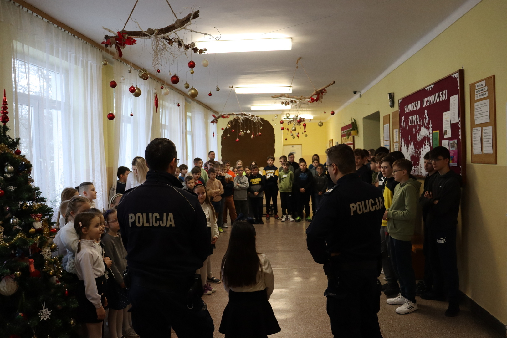 24 stycznia 2024 r. w naszej szkole gościliśmy policjantów z Posterunku Policji w Błażowej. W trakcie spotkania policjanci zwrócili uwagę na bezpieczeństwo dzieci w szkole i poza nią, zagrożenia internetowe, niebezpieczne treści i kontakty jakie możemy spotkać w Internecie, konsekwencje prawne niewłaściwych zachowań. Ponadto omówione zostały tematy związane z przemocą i agresją oraz jak uczniowie mają postępować gdy są ich świadkami. Policjanci przypomnieli wszystkim o bezwzględnym stosowaniu się do zasad i norm regulujących funkcjonowanie jednostki w społeczeństwie.
