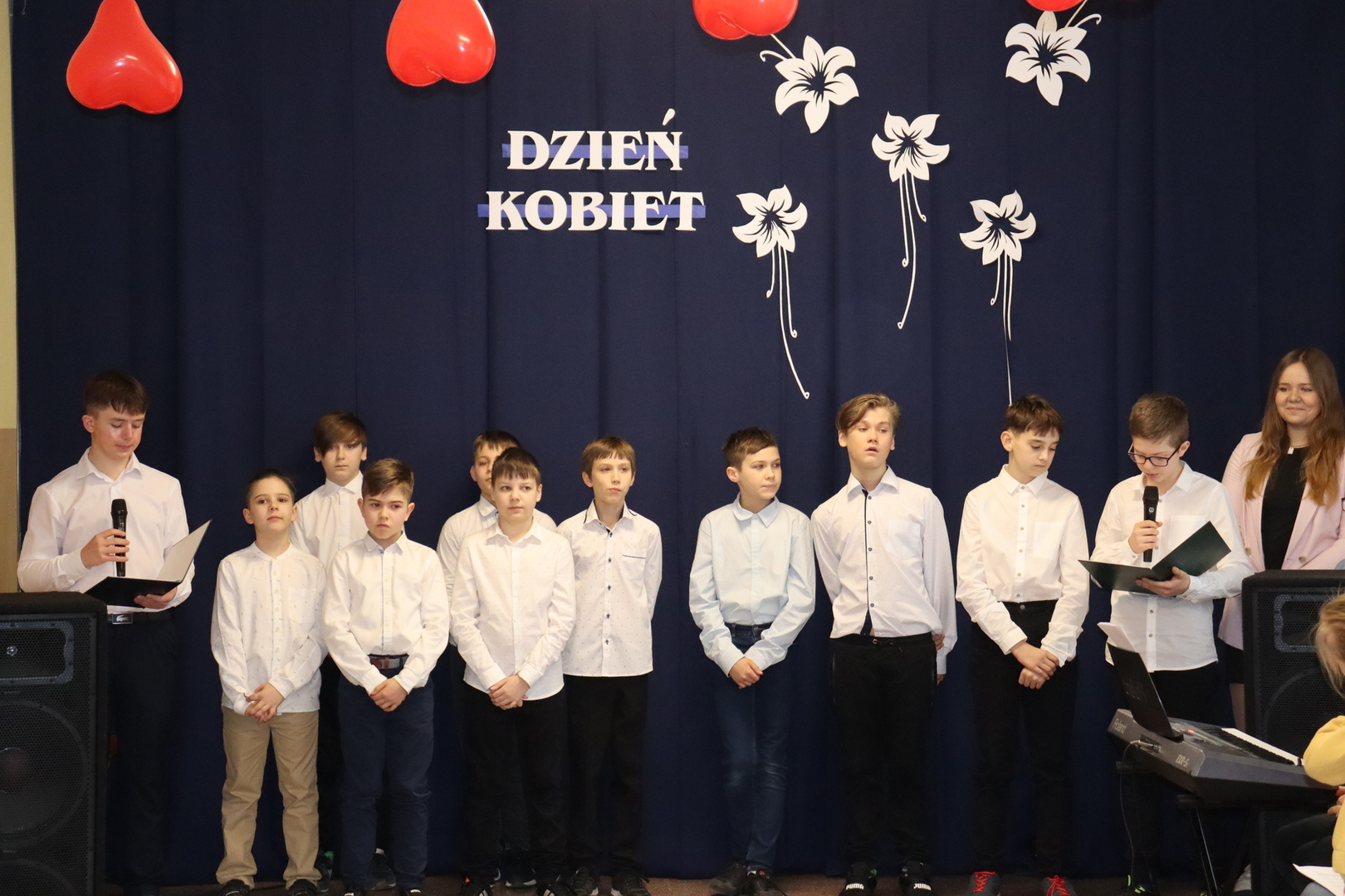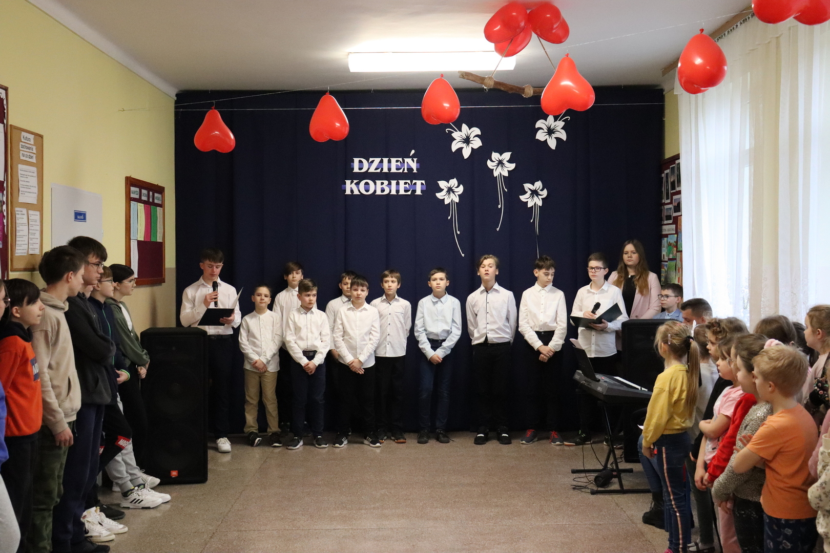 W piątek, 8 marca przypada Międzynarodowy Dzień Kobiet. Z tej to właśnie okazji męska część naszej szkoły postanowiła już dzisiaj (6 marca) uświetnić ten dzień. Pod czujnym okiem Samorządu Uczniowskiego chłopcy przygotowali uroczystą akademię, dzięki której zbliżające się święto wszystkich kobiet i dziewczynek uświetnili wieloma wierszykami i życzeniami. Nie zabrakło również pięknych szlagierów estradowych polskiej sceny muzycznej. Naszym paniom i koleżankom dedykowane były dzisiaj wielkie przeboje Alicji Majewskiej: "Być kobietą", Eugeniusza Bodo: "Umówiłem się z nią na dziewiątą" i piosenka "8 marca". Wykonawcami byli kolejno: Aleksandra Sowa - uczennica klasy VII, Adrian Pępek - uczeń klasy VI oraz Jakub Kopiec i Jakub Sowa - uczniowie klasy V. Na koniec wszystkie nasze panie i koleżanki obdarowane zostały uśmiechem i drobnym, słodkim upominkiem.