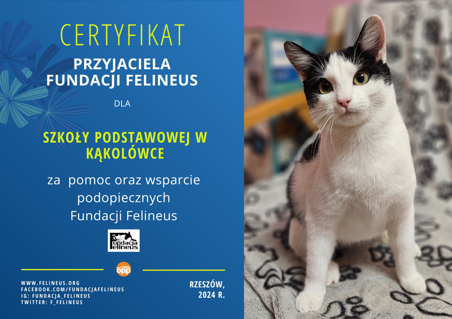 Uczniowie naszej szkoły otworzyli swoje serca i pokazali, że los porzuconych zwierząt nie jest im obojętny. Udało się zebrać kilkanaście kilogramów karmy suchej i mokrej. Zebrane artykuły zostały już przekazane podopiecznym Fundacji Felineus.