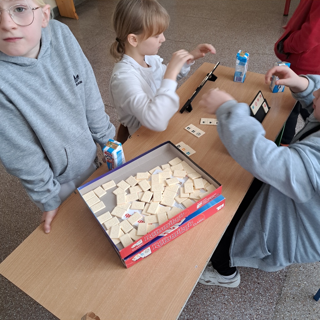 Daliśmy naszym uczniom trochę odmiany w nauce matematyki, pokazaliśmy im że matematyka może być przyjemna i dawać radość. Możliwość udziału w różnych grach, zabawach, rozwiązywanie rebusów, krzyżówek i zagadek matematycznych pokazały inną stronę tej nauki. Matematyka była także obecna podczas przerw, gdzie uczniowie rozgrywali pojedynki wykorzystując gry logiczne m.in. Rummikub, piramidy matematyczne, BrainBox Matematyka, La Cucaracha i wiele innych.