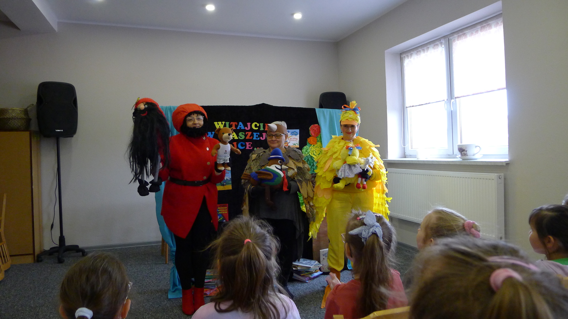 25 kwietnia uczniowie klasy I i II wyjechali do Błażowej, aby tam odwiedzić Miejsko-Gminną Bibliotekę Publiczną. W bibliotece powitały nas bardzo miło panie: Ania, Madzia i Joanna oraz pan Jakub. Panie bibliotekarki przedstawiły teatrzyk, w którym głównymi bohaterami były postacie z polskich bajek. Ogromnym powodzeniem cieszyła się zabawa ruchowa związana z historią o tajemniczym kogucie. Uczniowie spędzili niezapomniane chwile w błażowskiej bibliotece.