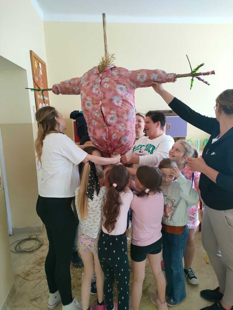 8 maja w klasie pierwszej odbyła się lekcja otwarta z udziałem Rodziców. Jej celem było wykonanie Stracha na wróble. Wszyscy uczestnicy od razu zabrali się do pracy i z zapałem wykonywali powierzone zadania w swoich grupach. Dzięki dobrej współpracy oraz ogromnemu zaangażowaniu wszystkich Mam i uczennic udało się wykonać pięknego stracha, który weźmie udział w konkursie na najpiękniejszego Stracha na wróble. Było to miłe spotkanie, które wzmocniło wzajemne relacje, zintegrowało dorosłych i dzieci oraz dostarczyło wiele śmiechu i pozytywnych emocji.
