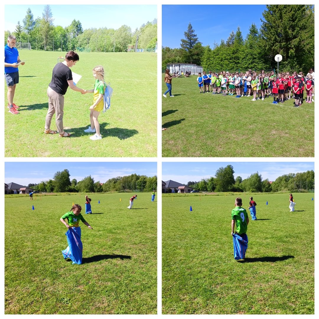 17 maja 2024 r. na boisku sportowym w Nowym Borku odbyły się zawody sportowe "Baw się z nami". Są to zawody drużynowe składające się z siedmiu konkurencji: sztafeta, dodawanie skoków, zmiana piłek, bieg w workach, rzuty do żywego kosza, bieg z szarfami, strzały na bramkę. W zmaganiach wzięła udział nasza reprezentacja w składzie: Amelia Świst, Izabela Kułaga, Jan Ułomek, Kacper Mrózek, Miłosz Dziepak, Jakub Kulasa, Zuzanna Kozdraś, Zuzanna Kijowska, Luiza Cyran i Maksymilian Sapa. Nasi uczniowie walczyli z całych sił. Przed ostatnią konkurencją zajmowaliśmy trzecie miejsce. Niestety jak to czasem w sporcie bywa emocje wzięły górę i rywale strącili nas z podium. Najważniejsze, że daliśmy z siebie wszystko, a pogoda była idealna, podobnie jak organizacja zawodów.