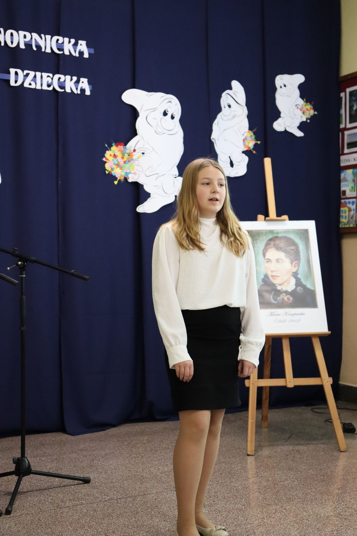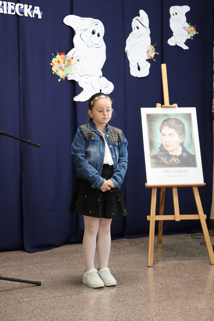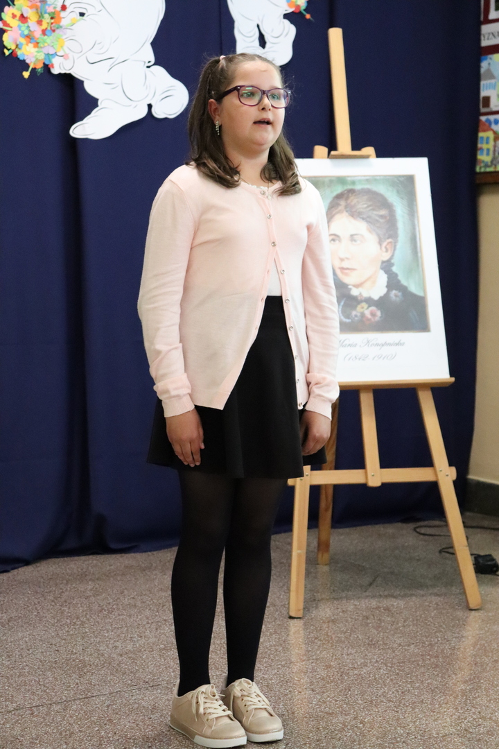 22 maja 2024 r. odbył się XVI Gminny Konkurs Recytatorski „Maria Konopnicka w oczach dziecka”. Celem konkursu była popularyzacja poezji i prozy patronki naszej szkoły, rozwijanie uzdolnień i doskonalenie umiejętności recytatorskich oraz rozwijanie wrażliwości artystycznej. Konkurs zorganizowany został w dwóch kategoriach wiekowych dla klas 1-3 oraz klas 4-8.