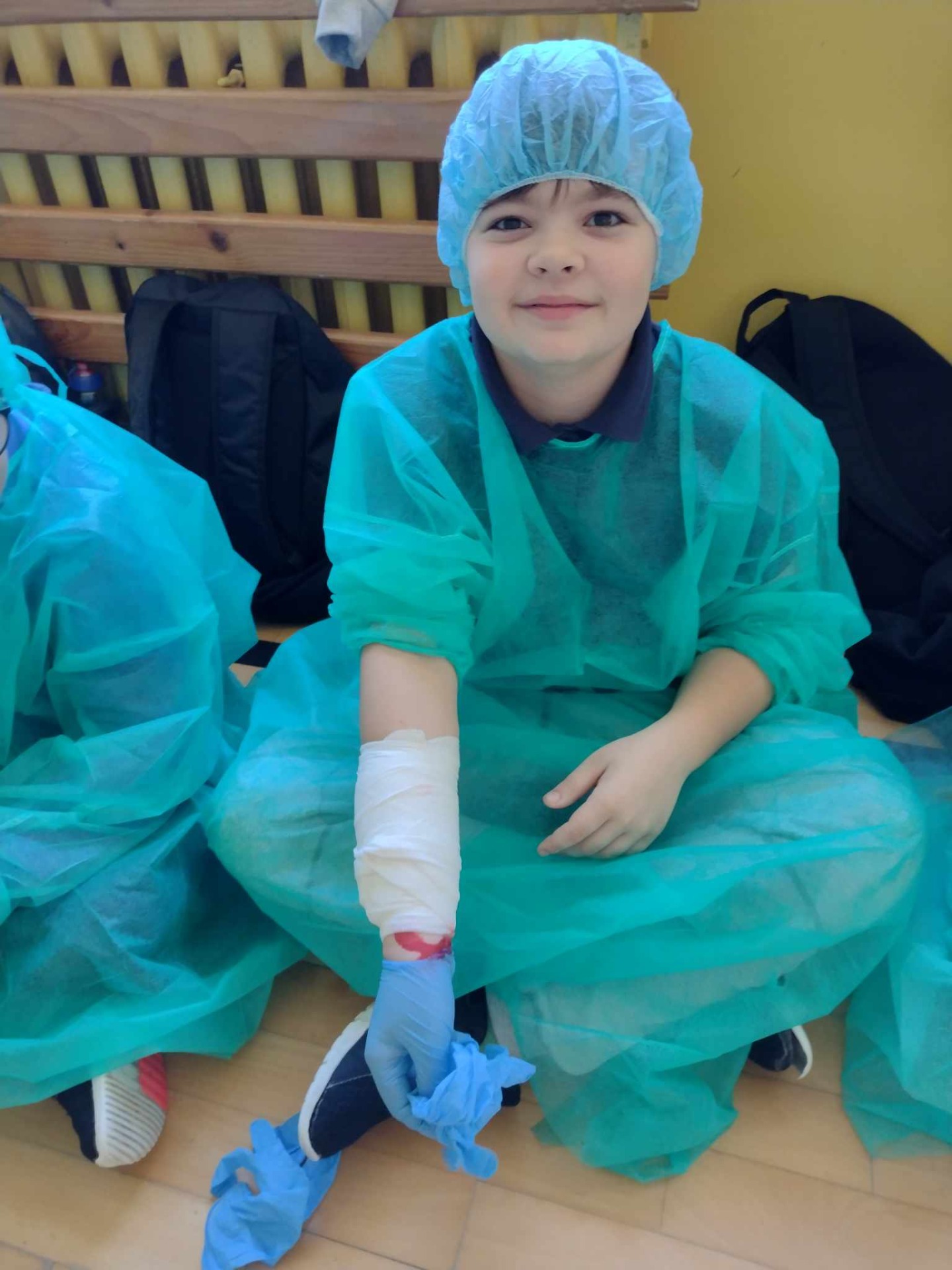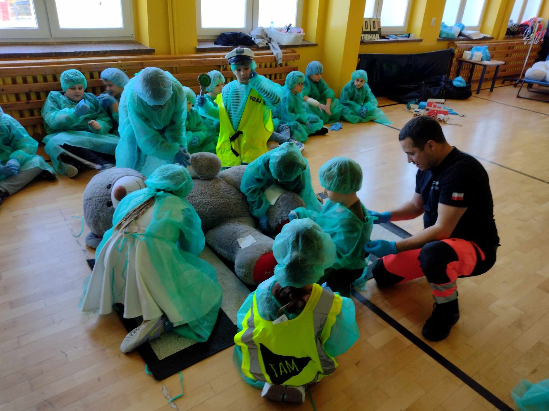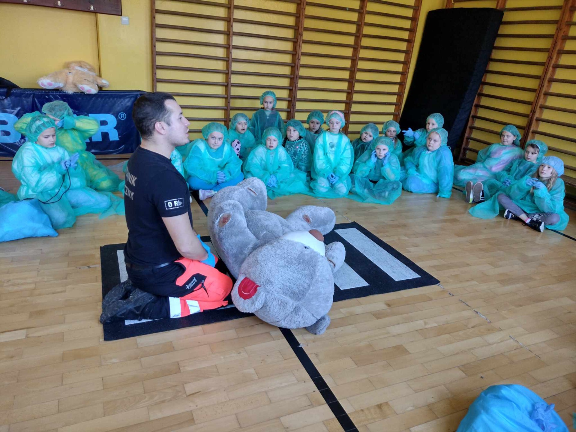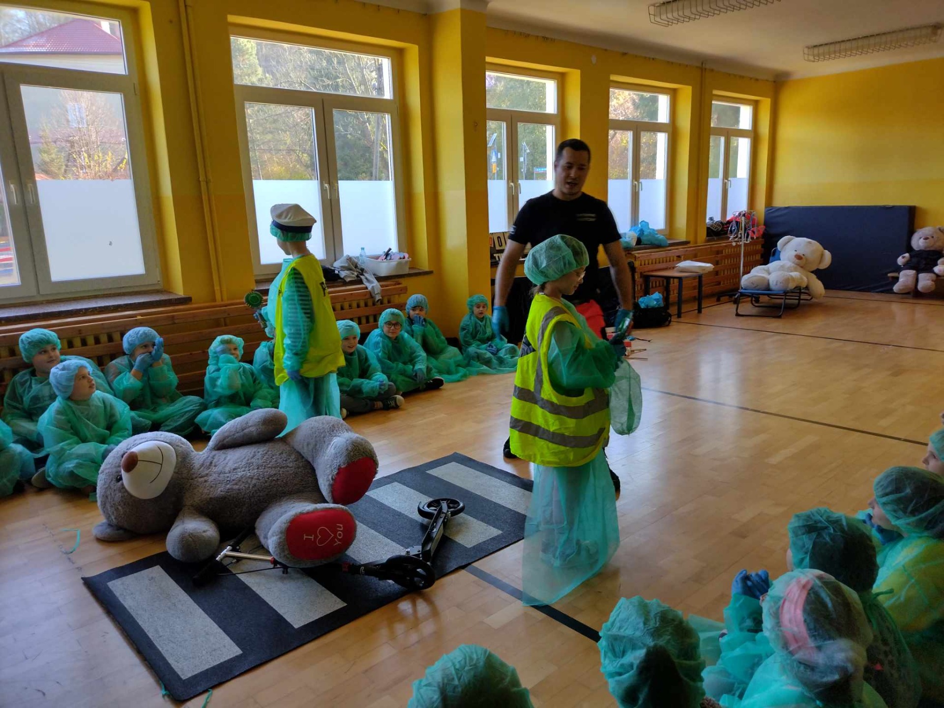 5 listopada gościliśmy w naszej szkole „Klinikę Doktora Misia”. Podczas zajęć z Doktorem Misiem uczniowie klas I-IV dowiedzieli się, jak należy postępować w sytuacji, gdy widzimy osobę słabą, potrzebującą pomocy lub leżącą, jakie wykonać czynności. Utrwalili również znajomość numerów alarmowych oraz wykazali się znajomością zachowania pieszych w ruchu drogowym. Dzieci zamieniły się w małych ratowników i ruszyły z pomocą Misiowi Zdzisiowi, który uległ wypadkowi. Wszyscy z wielką przyjemnością uczestniczyli w proponowanych aktywnościach. Wyjątkowa nauka poprzez wspaniałą zabawę bardzo spodobała się naszym uczniom. To była dla nas bardzo cenna lekcja!