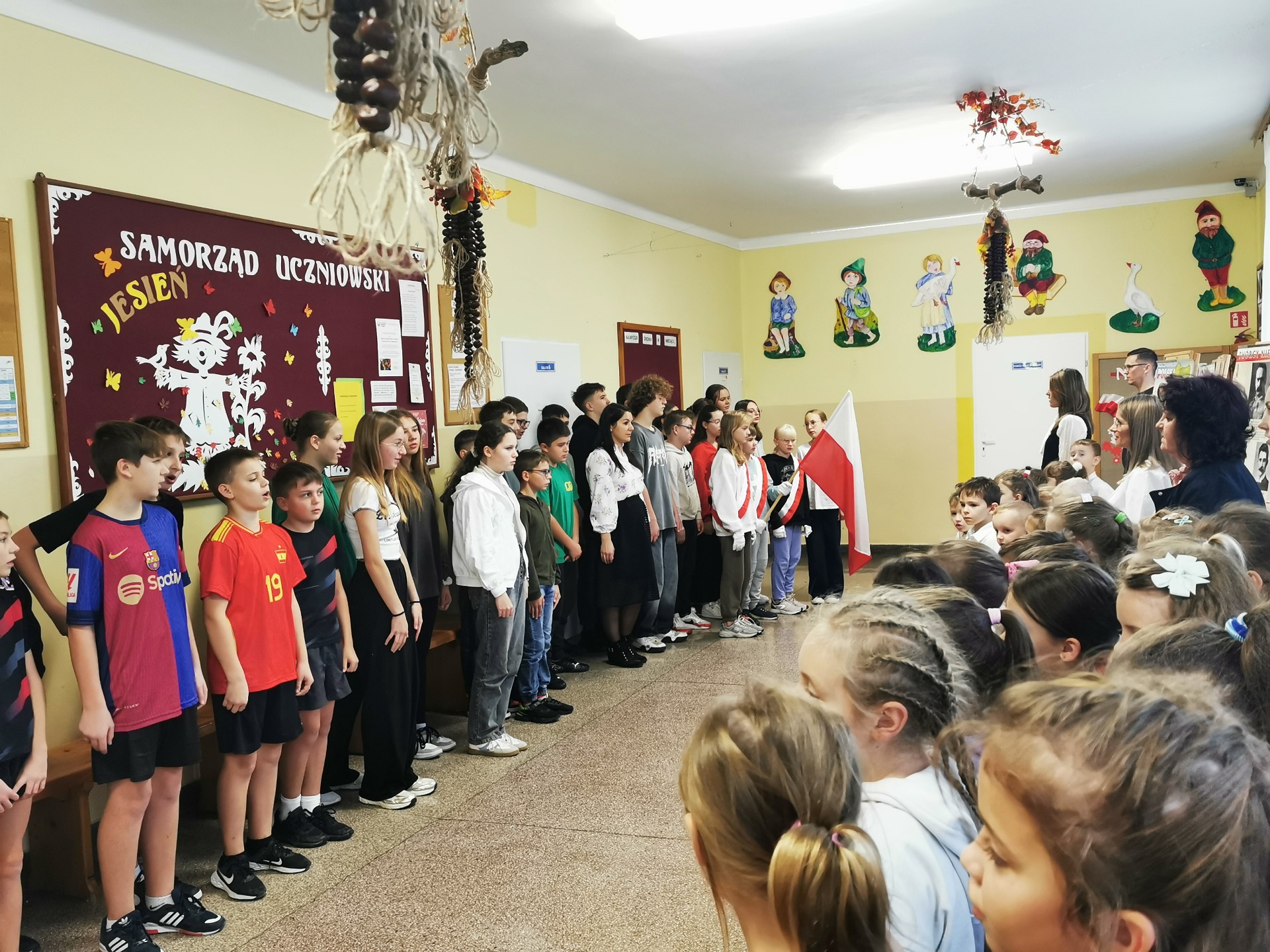 Podobnie jak w ubiegłych latach Ministerstwo Edukacji Narodowej zaproponowało wspólne odśpiewanie hymnu narodowego w ostatni dzień roboczy przed Narodowym Świętem Niepodległości o symbolicznej godzinie 11:11. W tym roku był to piątek, 8 listopada. Nasza szkoła zgłosił swój udział w akcji "Szkoła do hymnu". Dzisiaj, o godzinie 11.11 wszyscy uczniowie i nauczyciele uroczyście zaśpiewali "Mazurek Dąbrowskiego". W tej podniosłej chwili towarzyszyły nam również przedszkolaki. Jesteśmy dumnymi Polakami!