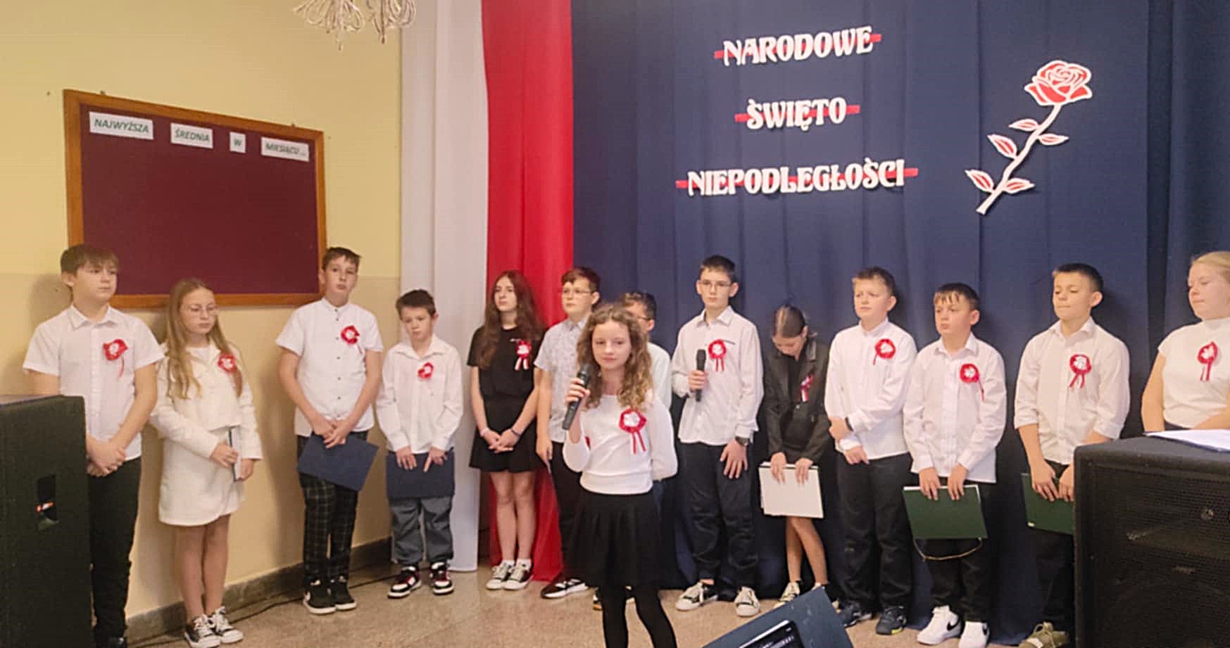 Po odśpiewaniu hymnu państwowego odbyła się część artystyczna na temat historii Polski. Uczniowie klasy 6 recytowali wiersze, przypomnieli ważne wątki historyczne oraz śpiewali piosenki patriotyczne. Szkolne obchody święta 11 listopada są coroczną tradycją naszej szkoły, a dzień ten dla wielu jest lekcją patriotyzmu.