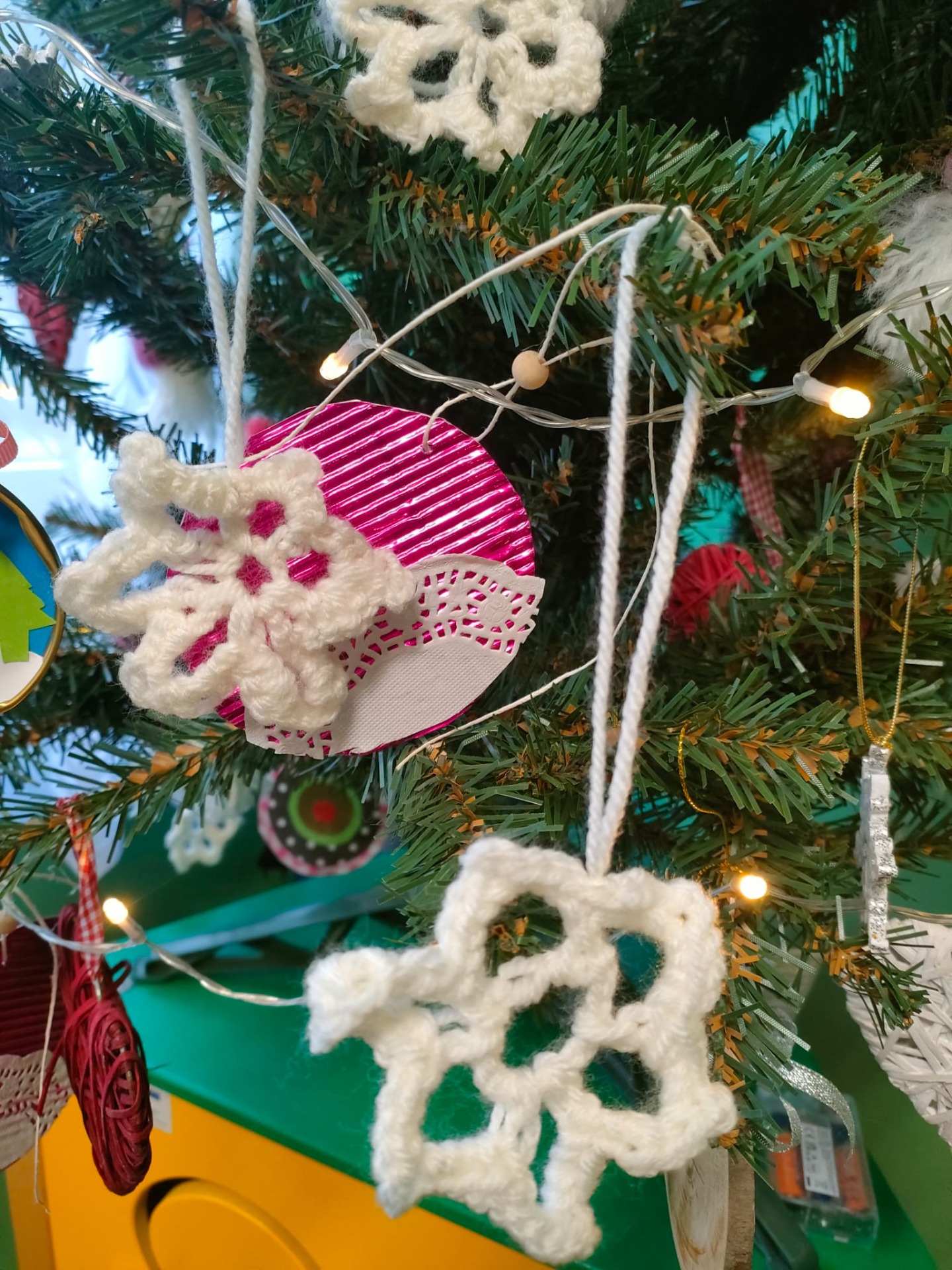 4 grudnia, w związku ze zbliżającymi się Świętami Bożego Narodzenia, w klasie II odbyła się nietypowa lekcja, na którą zostali zaproszeni Rodzice. Uczennice wraz ze swoimi mamami wykonały świąteczne gwiazdki na szydełku. Wszystkim należą się ogromne słowa uznania, ponieważ potrzeba było wiele zapału i cierpliwości, by wykonać taką pracę. Piękne szydełkowe gwiazdki już zdobią klasową choinkę. Wszystkim uczestnikom, a w szczególności mamom uczennic klasy II bardzo dziękujemy za zaangażowanie i udział w warsztatach.