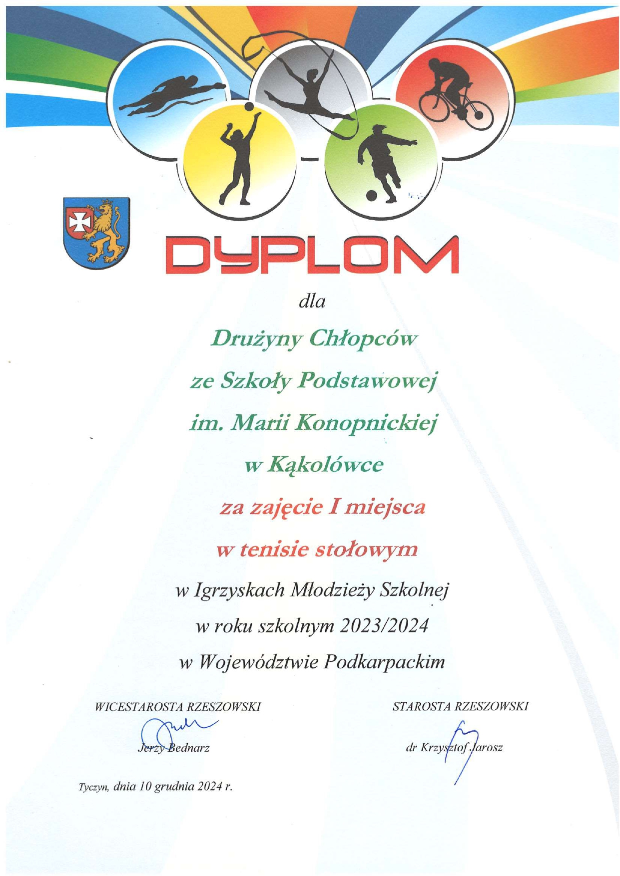 Podsumowanie współzawodnictwa sportowego w powiecie rzeszowskim za rok szkolny 2023/2024