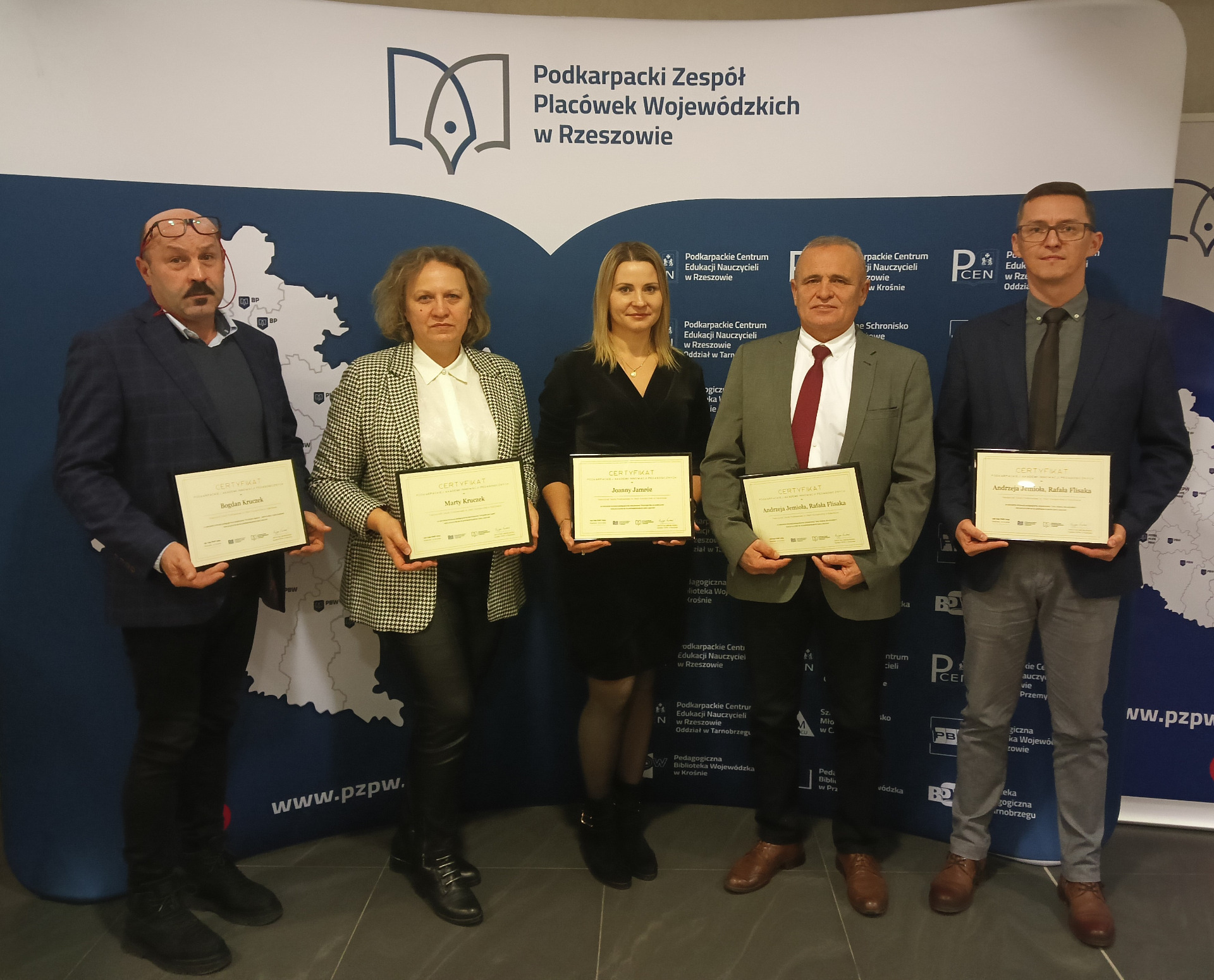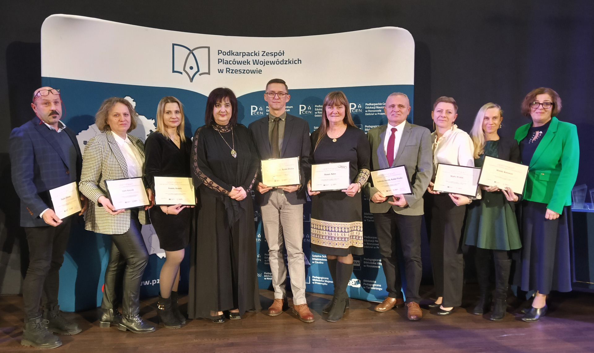 Miło nam poinformować, że podczas uroczystej gali, która odbyła się 12 grudnia 2024 r. w Instytucie Teologiczno – Pastoralnym w Rzeszowie certyfikaty Podkarpackiej Akademii Innowacji Pedagogicznych z rąk Pani Krystyny Wróblewskiej – dyrektor Podkarpackiego Zespołu Placówek Wojewódzkich w Rzeszowie odebrali nauczyciele naszej szkoły Rafał Flisak, Joanna Jamróz, Andrzej Jemioła, Bogdan Kruczek i Marta Kruczek. Certyfikat akademii to wyróżnienie przyznawane nauczycielom, którzy realizują w swoich placówkach innowacje pedagogiczne przyczyniając się do podnoszenia jakości pracy szkoły.
