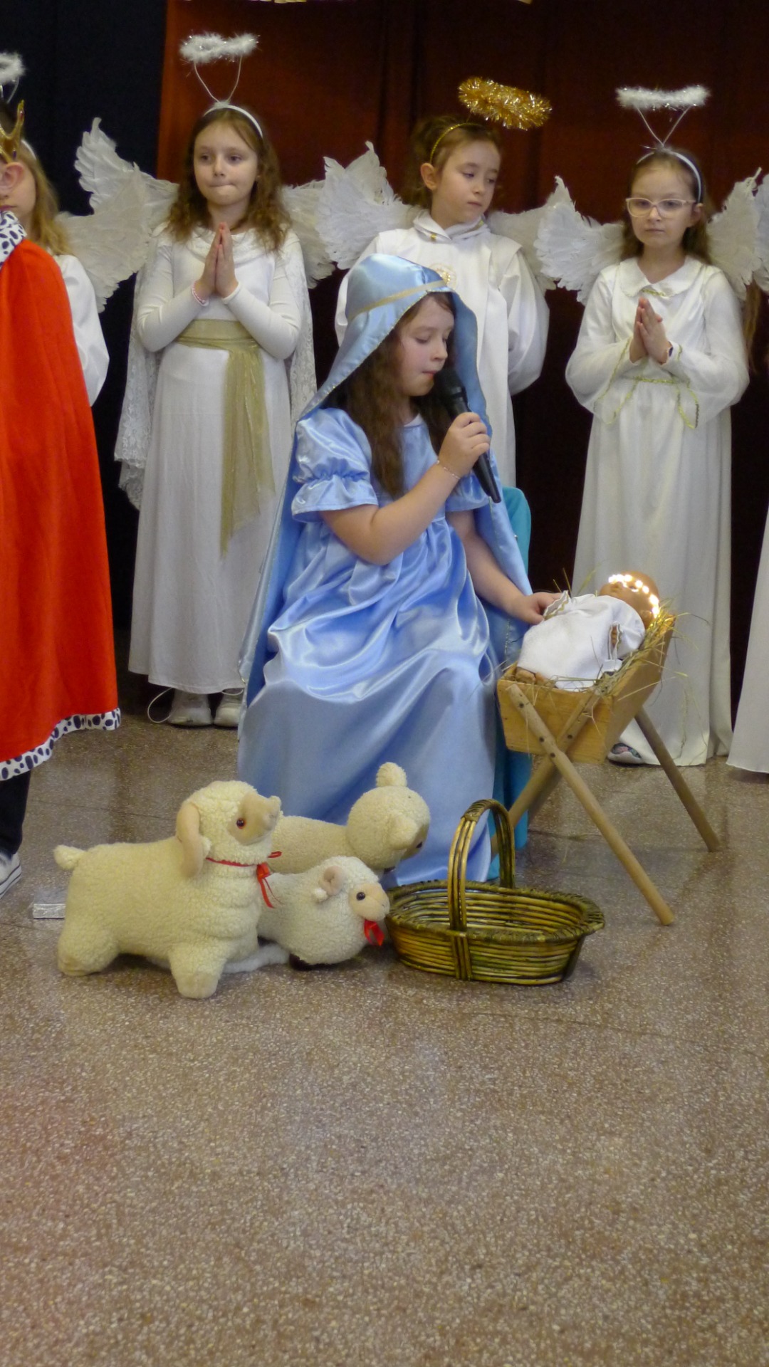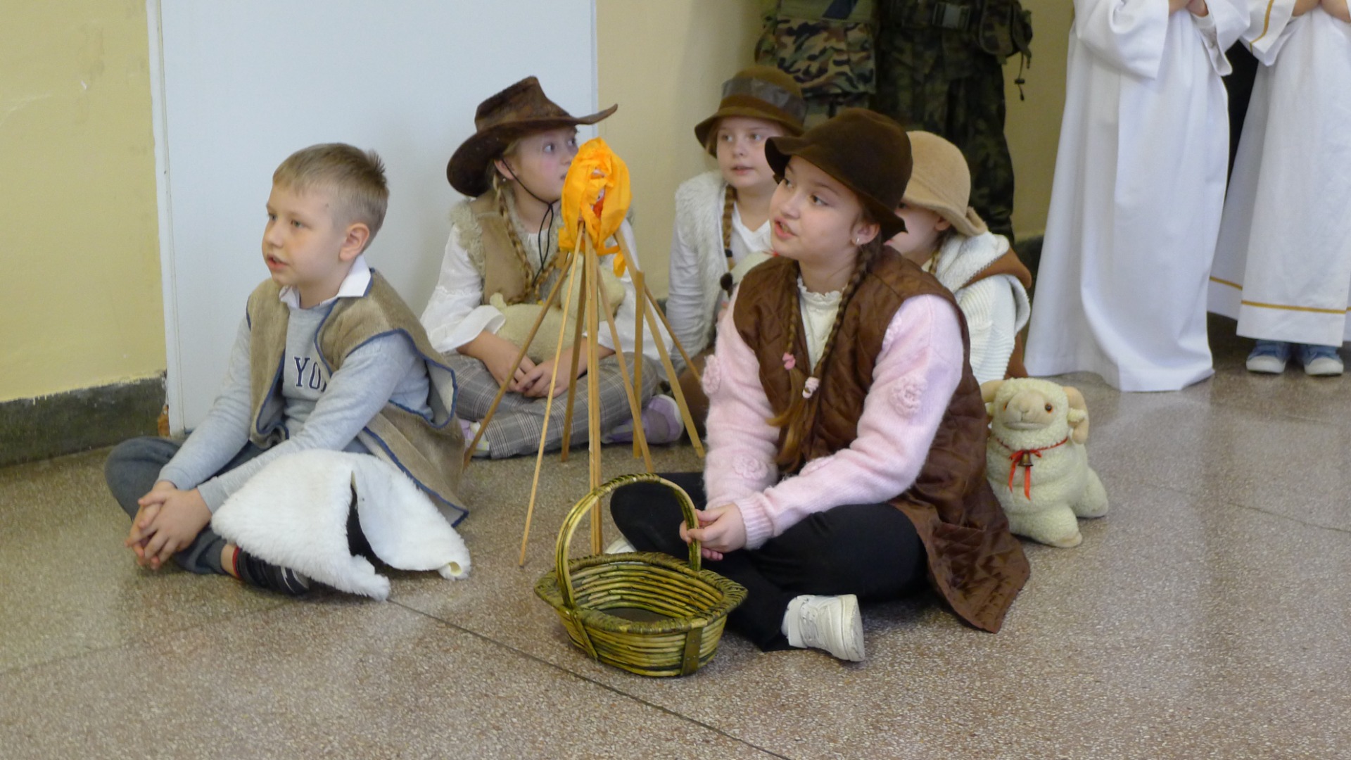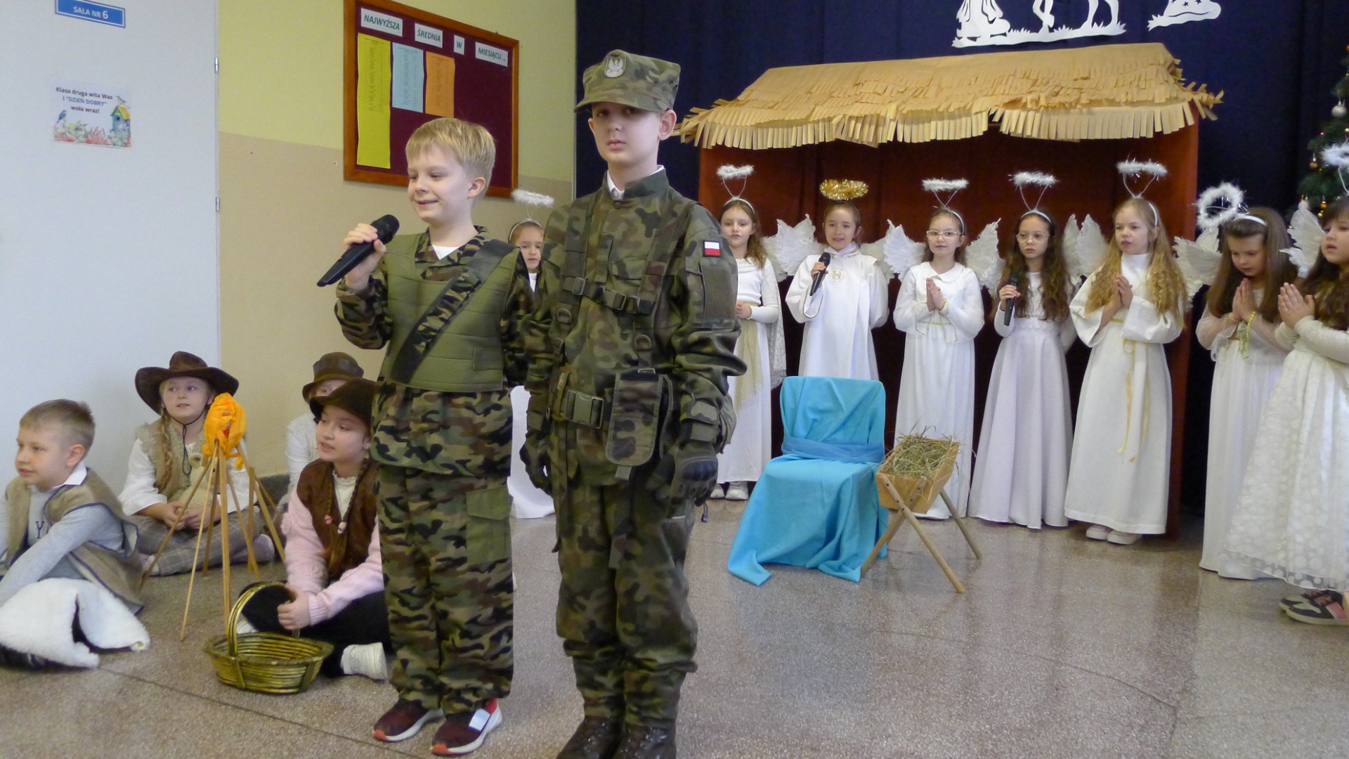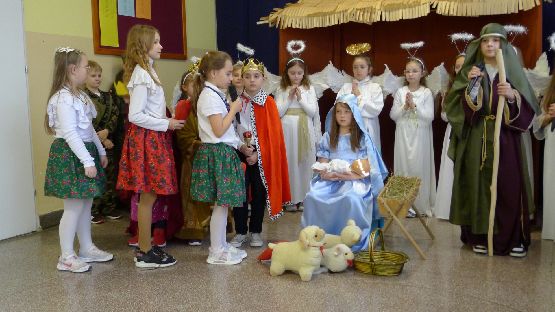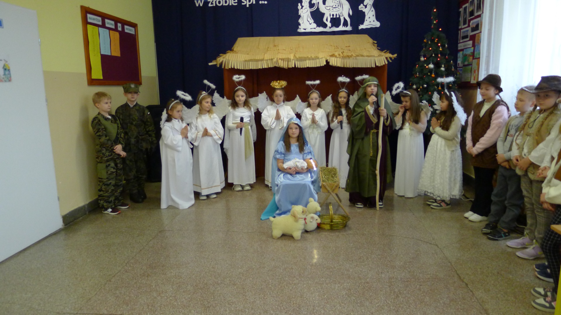 Dzisiejszego dnia przeżywaliśmy ponownie radość narodzin Bożego Syna. Stało się to za przyczyną uczniów z klasy I, II i III, którzy wcielili się w postacie biblijne i wystawili Jasełka. Przedstawienie, które emanowało spokojem i magicznym nastrojem, wprowadzało nas w stan świątecznego oczekiwania. Ciepłe, prosto z serc płynące teksty składały hołd Małemu Jezusowi. Całości dopełniła piękna dekoracja i brawurowo wykonane przez uczniów kolędy i pastorałki. Szkolni aktorzy zaprezentowali tradycyjną historię narodzin Jezusa Chrystusa. Stroje, muzyka, a przede wszystkim gra aktorska sprawiły, że wszystkie serca wypełniła radość i wprowadziła nas w świąteczny, radosny klimat.