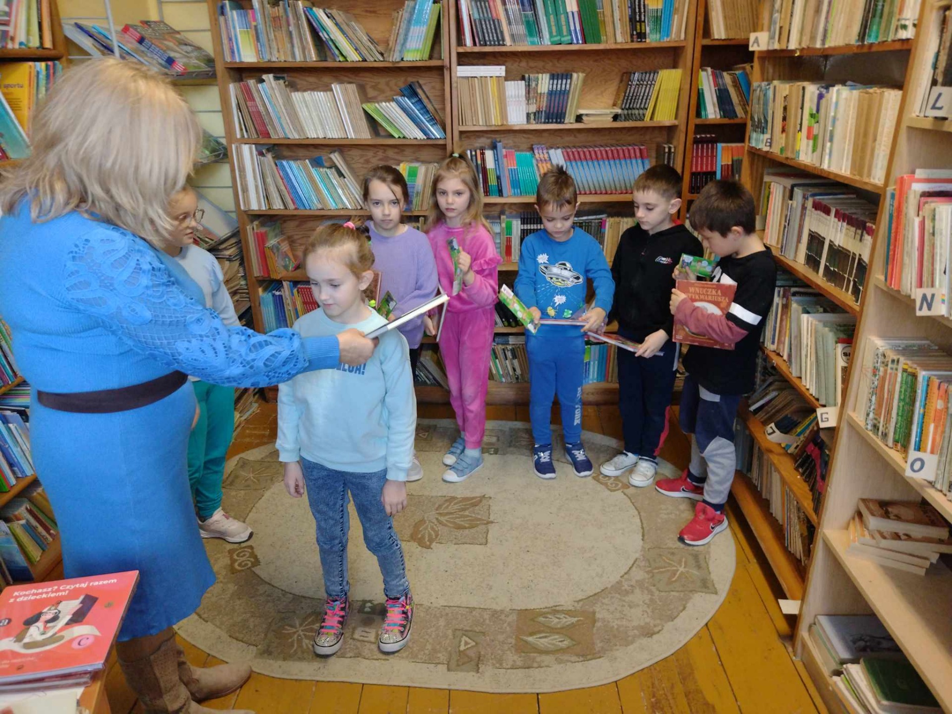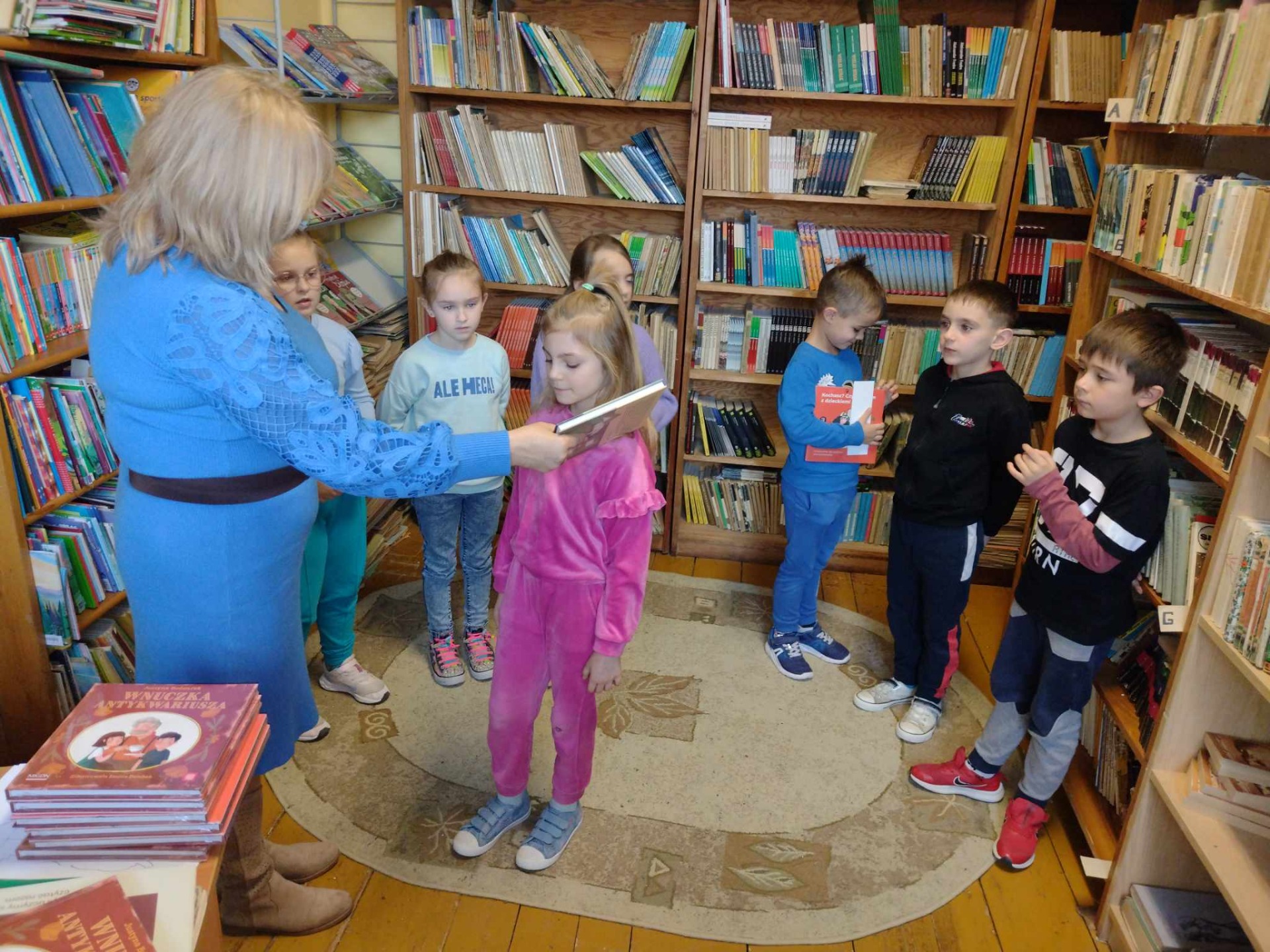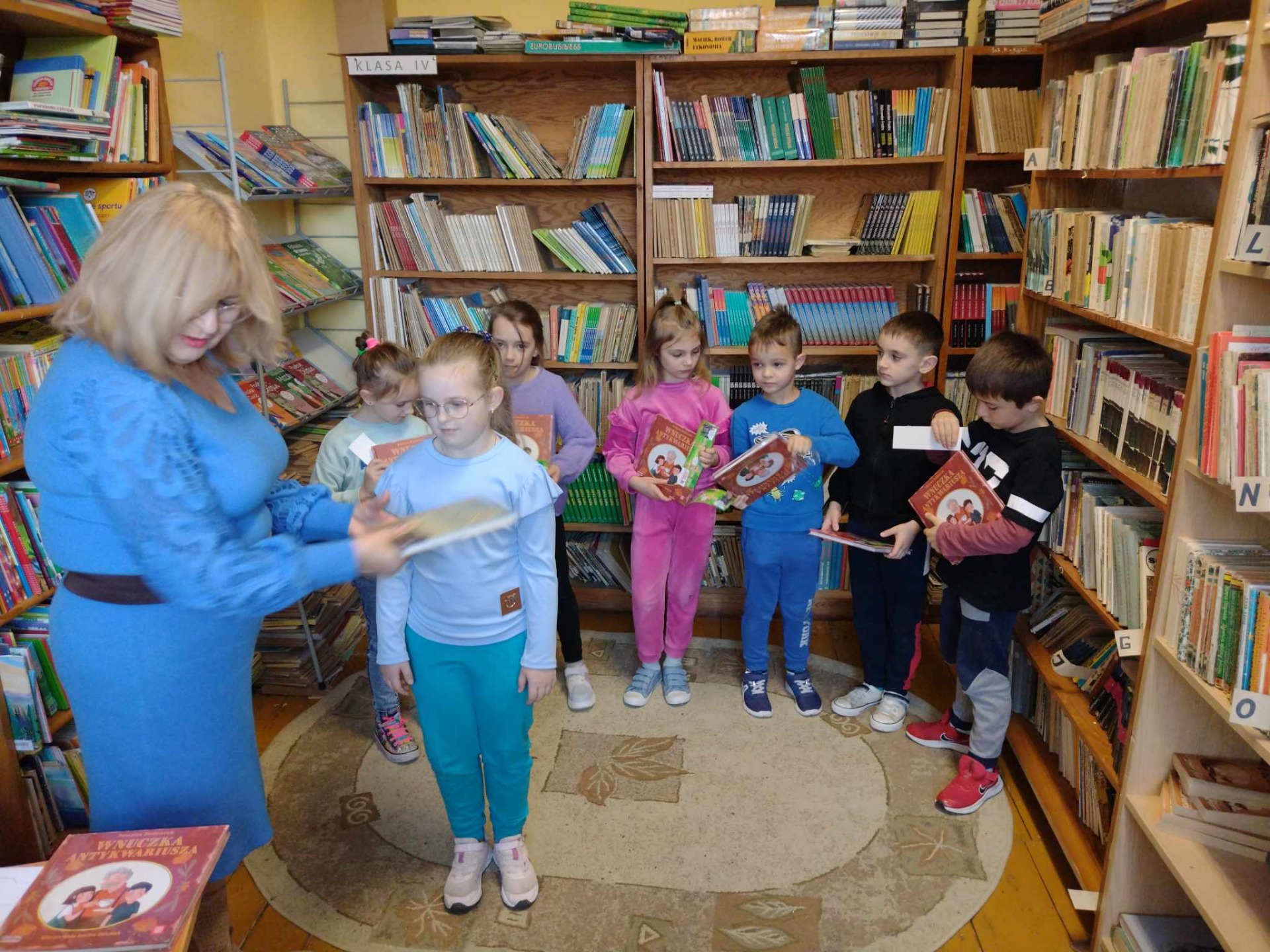 Pierwsze spotkanie z biblioteką szkolną to wyjątkowa uroczystość, a pierwsze wypożyczenie książki powinno na długo pozostać w pamięci dziecka. Nic więc dziwnego, że ślubowanie przyszłych czytelników z klasy pierwszej ,które odbyło się 19 grudnia było dla nich ogromnym przeżyciem. A wszystko zaczęło się od pogadanki nauczyciela biblioteki, z której dzieci dowiedziały się dlaczego warto czytać książki i jak je szanować. Głównym celem uroczystości było zachęcenie najmłodszych uczniów do korzystania z biblioteki szkolnej, wypożyczania książek oraz nieustannego rozwijania umiejętności czytania. Pasowanie na czytelnika to oficjalne przyjęcie uczniów do grona czytelników biblioteki. Zanim jednak uczniowie złożyli przyrzeczenie musieli wykazać się znajomością bajek i bajkowych postaci, z czym poradzili sobie doskonale. Następnie zapoznali się z księgozbiorem przeznaczonym dla najmłodszych czytelników, regulaminem biblioteki, sposobem wypożyczania książek oraz prośbami książki. Po takim wprowadzeniu, skupione i poważne uroczyście przyrzekły, że będą kochać i szanować książki, korzystać z ich mądrości i sumiennie wypełniać obowiązki czytelnika. Każdy uczeń z klasy pierwszej otrzymał na powitanie książkę pt. ,, Wnuczka antykwariusza". Te książki nasza szkoła otrzymała od Instytutu Książki w ramach kampanii ,, Mała książka – wielki człowiek’’. Strategicznym celem tego projektu jest rozwój czytelnictwa wśród dzieci w różnych grupach wiekowych.