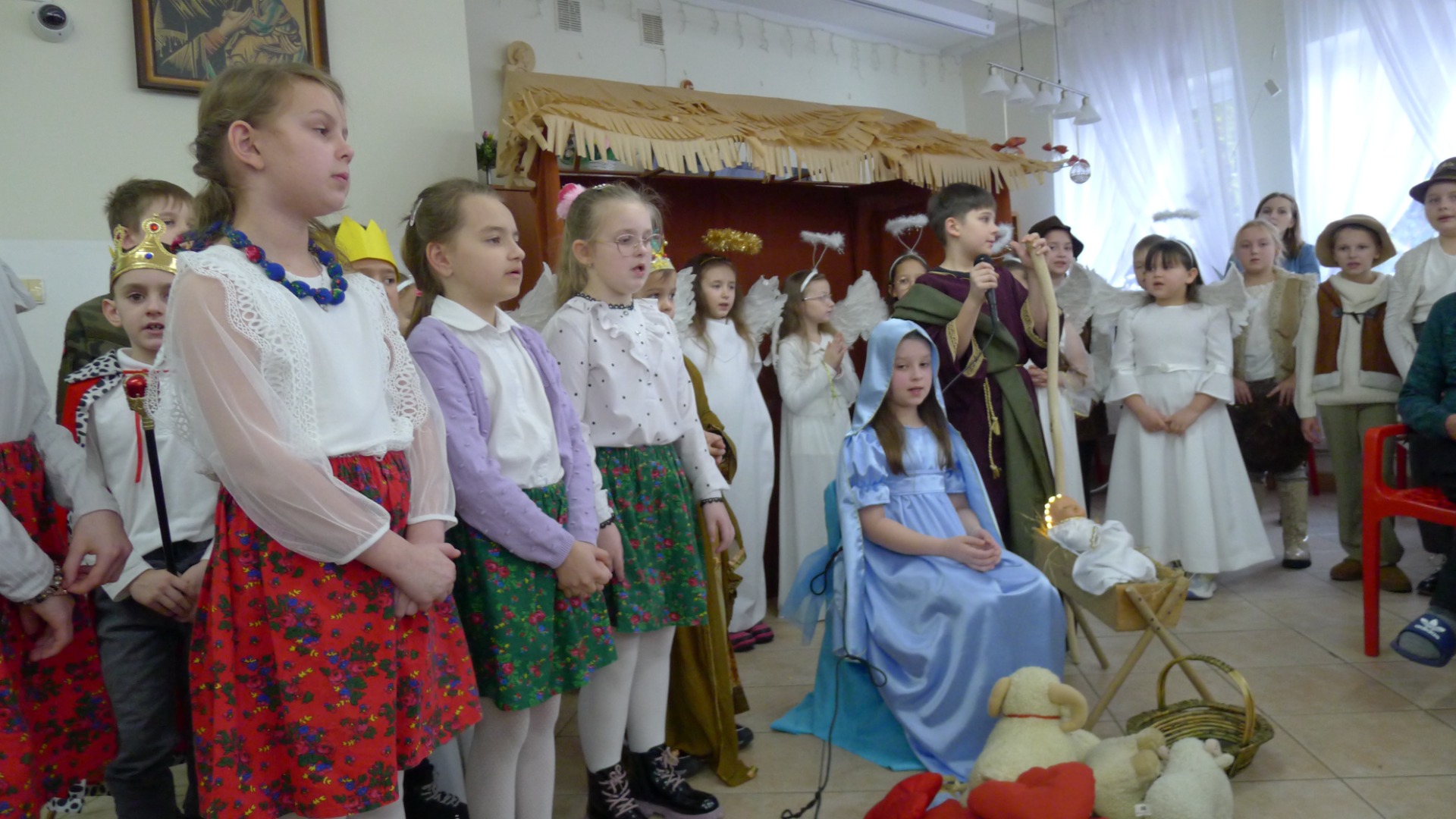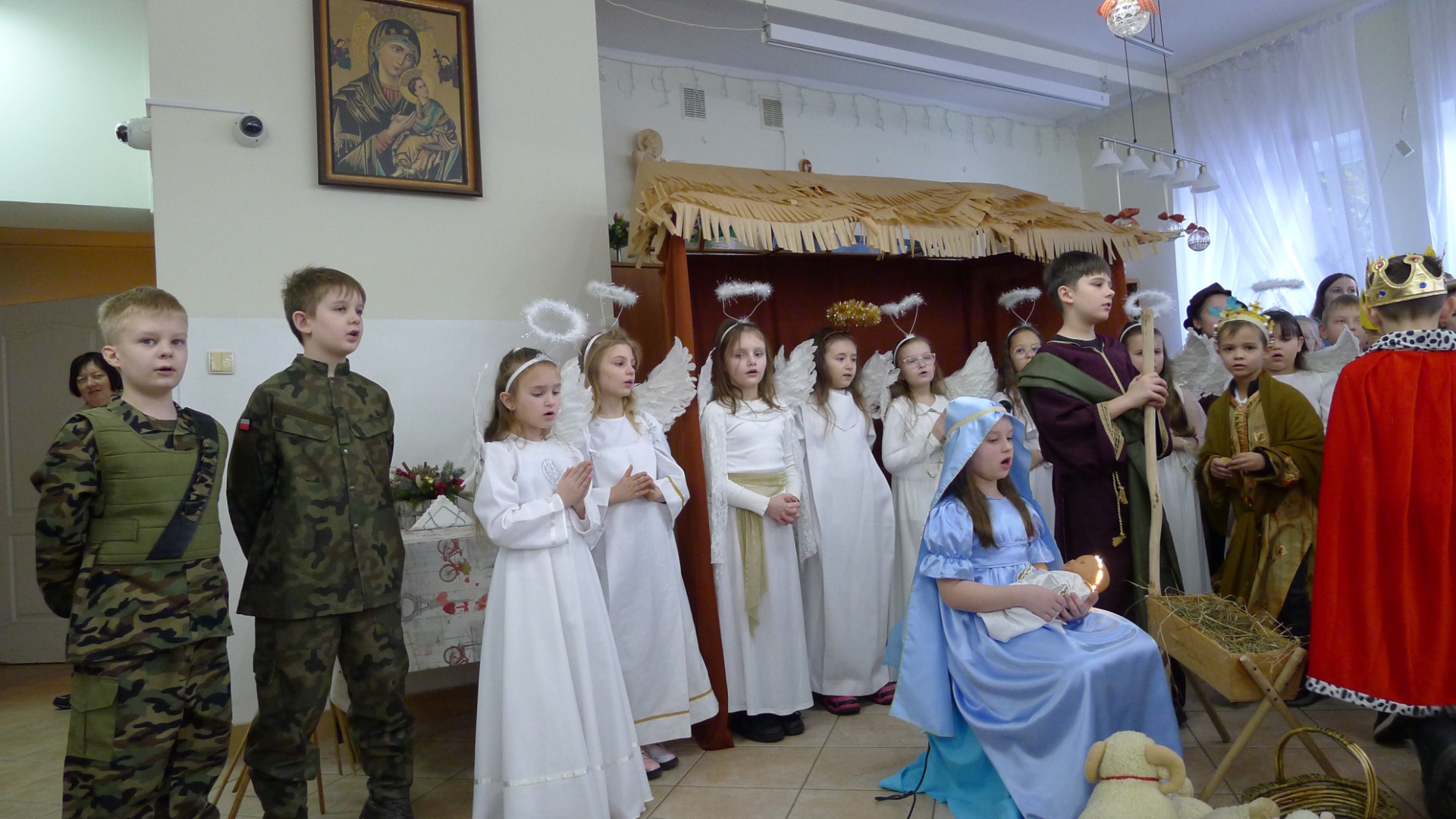 Uczniowie klasy I, II i III złożyli dzisiaj wizytę w Domu Spokojnej Starości dla osób starszych i chorych im. Św. Jana z Dukli w Kąkolówce. Nasi wychowankowie wystawili pensjonariuszom Caritasu przedstawienie jasełkowe. Zebrani goście (prócz pensjonariuszy DSS byli także uczestnicy zajęć ŚDS w Kąkolówce) mogli przenieść się na chwilę do Betlejem, gdzie narodził się mały Jezus. Inscenizacja była nagrodzona wielkimi brawami. Dzieci zostały dodatkowo obdarowane słydyczami. Cieszymy się z pięknej, pełnej szacunku postawy naszych uczniów. Obiecaliśmy, że będziemy częściej odwiedzać naszych sąsiadów.