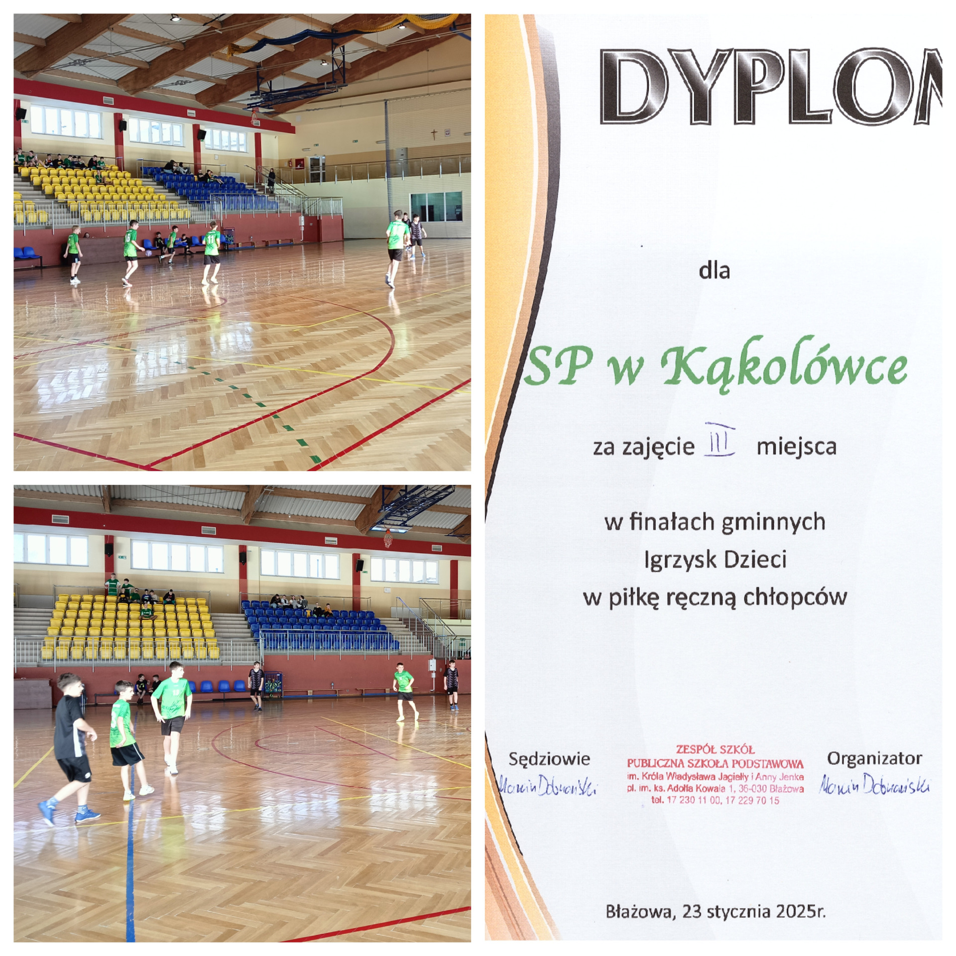 23 stycznia 2025 r. w Błażowej odbył się turniej piłki ręcznej rozgrywany w ramach Igrzysk Dzieci. Naszą szkołę reprezentowała drużyna chłopców w składzie: Jakub Mrózek, Jakub Sowa, Wiktor Wojtas, Jakub Kopiec, Kamil Ułomek, Wojciech Woźniak, Jan Ułomek, Kacper Mrózek, Paweł Bober, Bartłomiej Gwizdała, Miłosz Dziepak i Przemysław Sowa. Chłopcy zaprezentowali się bardzo dobrze w tych zawodach, zajmując III miejsce.