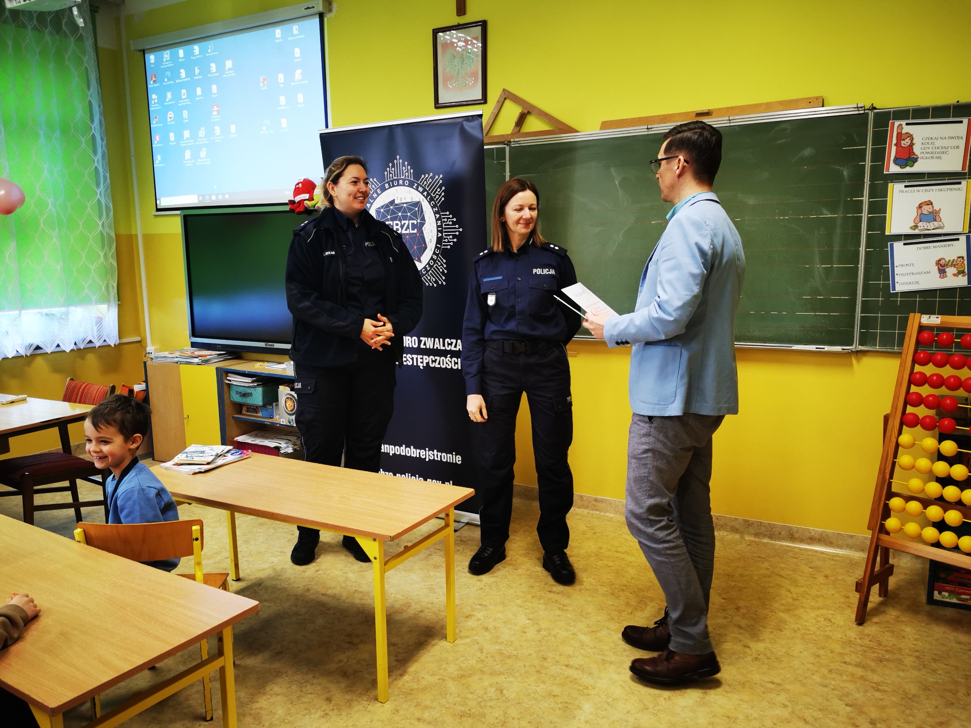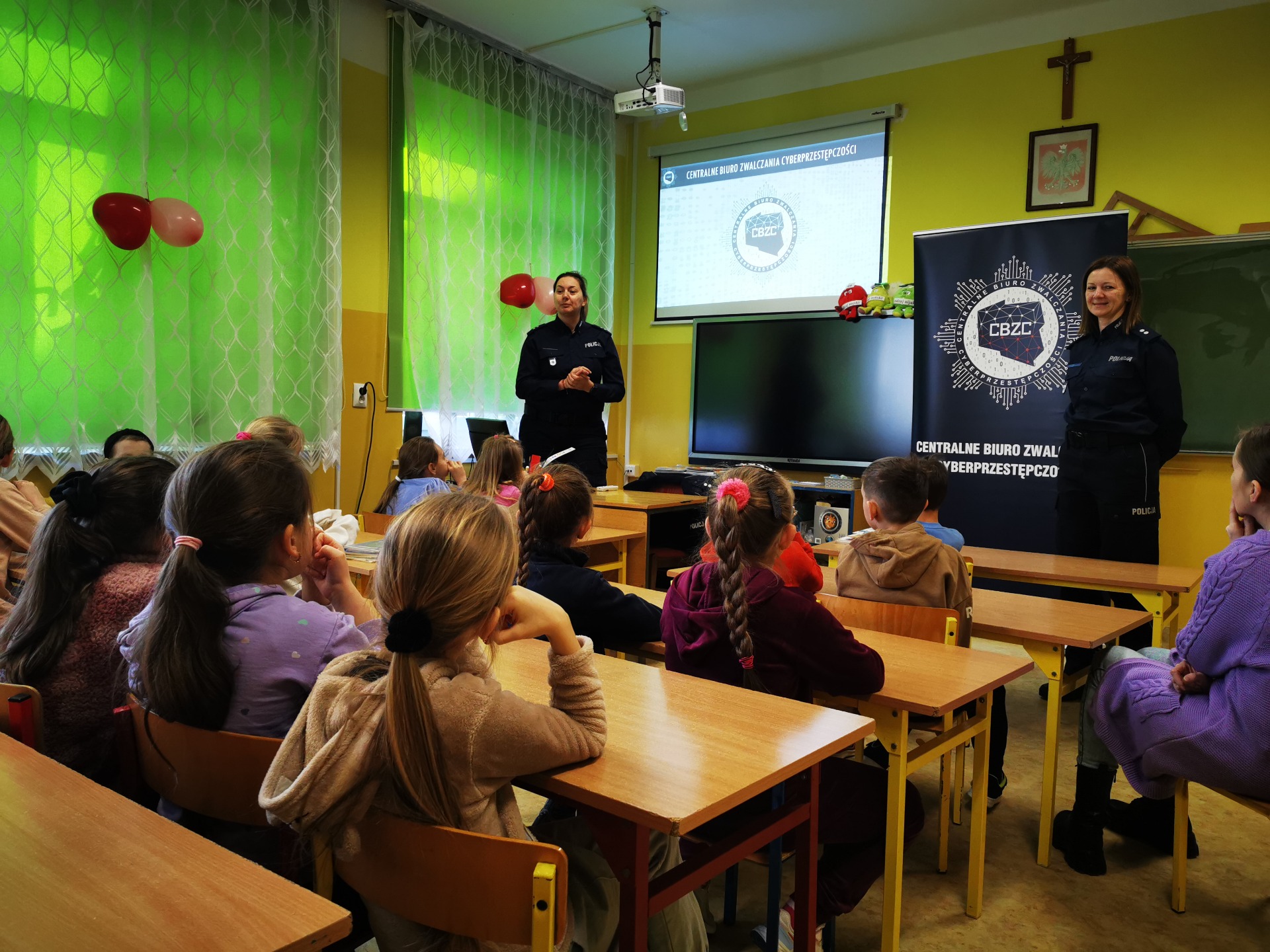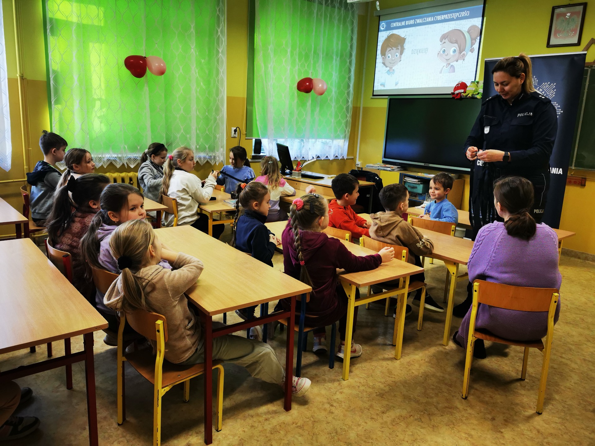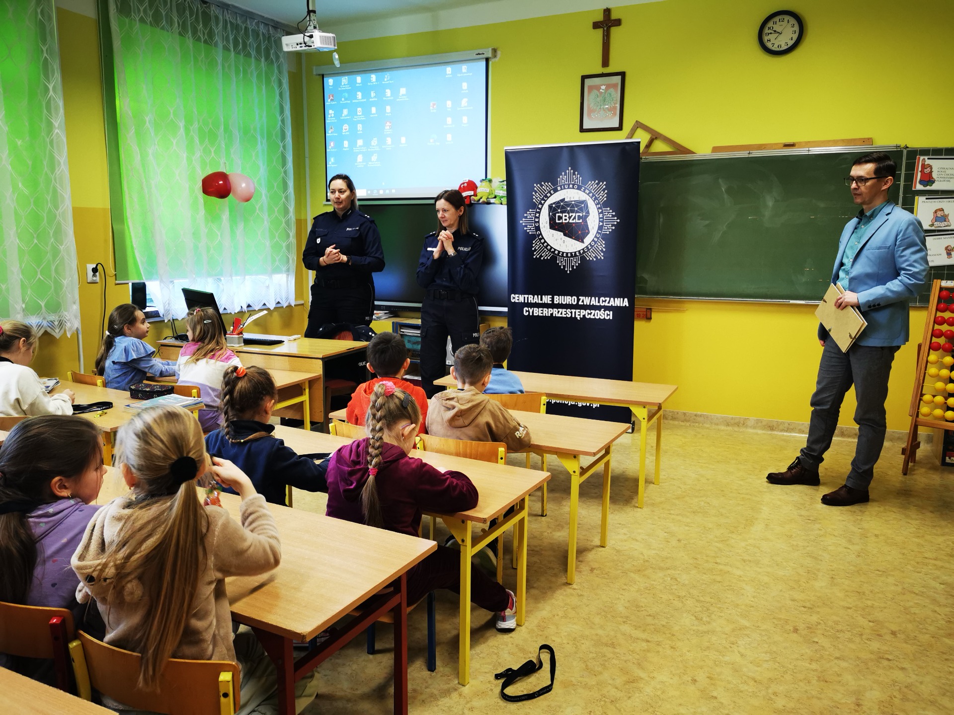 10 lutego do naszej szkoły przybyli wyjątkowi goście. Odwiedziły nas bowiem przedstawicielki Centralnego Biura Zwalczania Cyberprzestępczości: p. podkomisarz Karolina Dykas i p. podkomisarz Monika Skawińska-Berkowicz. Panie policjantki przedstawiły prezentację dotyczącą „Bezpieczeństwa w sieci”. Uczniowie klas I-III wykazali się dużą wiedzą i poprawnie odpowiadali na pytania zadawane przez policjantki. W nagrodę zostali obdarowani prezentami, które będą przypominać o tej niezwykłej lekcji. Bezpieczne poruszanie się po stronach internetowych jest ważną umiejętnością, która przyda się również w dorosłym życiu. Paniom: Karolinie i Monice bardzo dziękujemy za przekazanie bogatej wiedzy i cenne wskazówki!