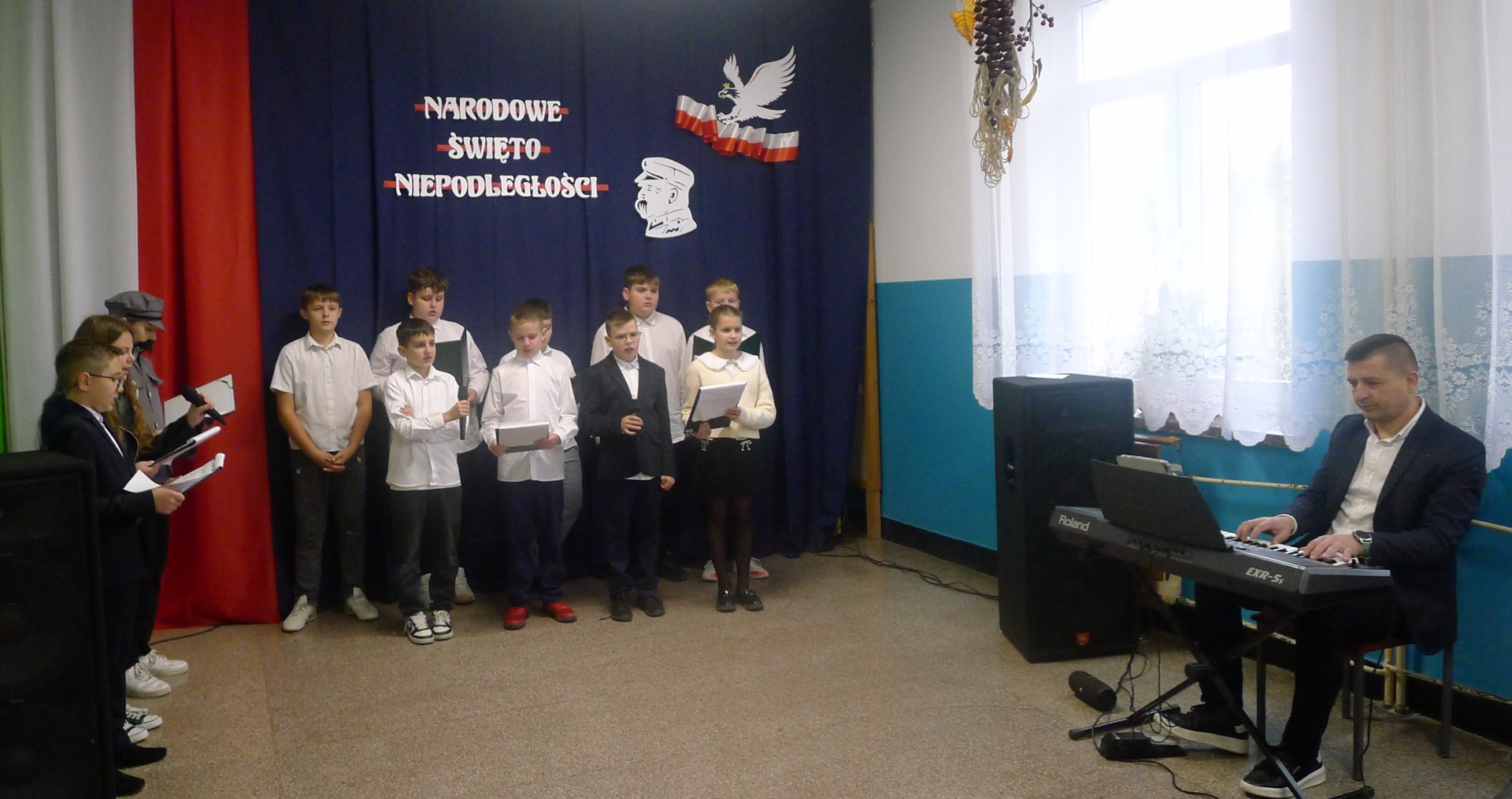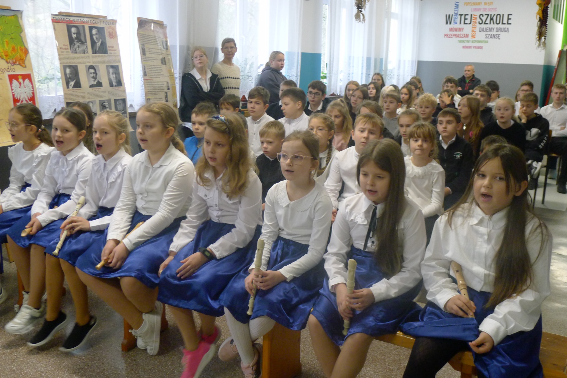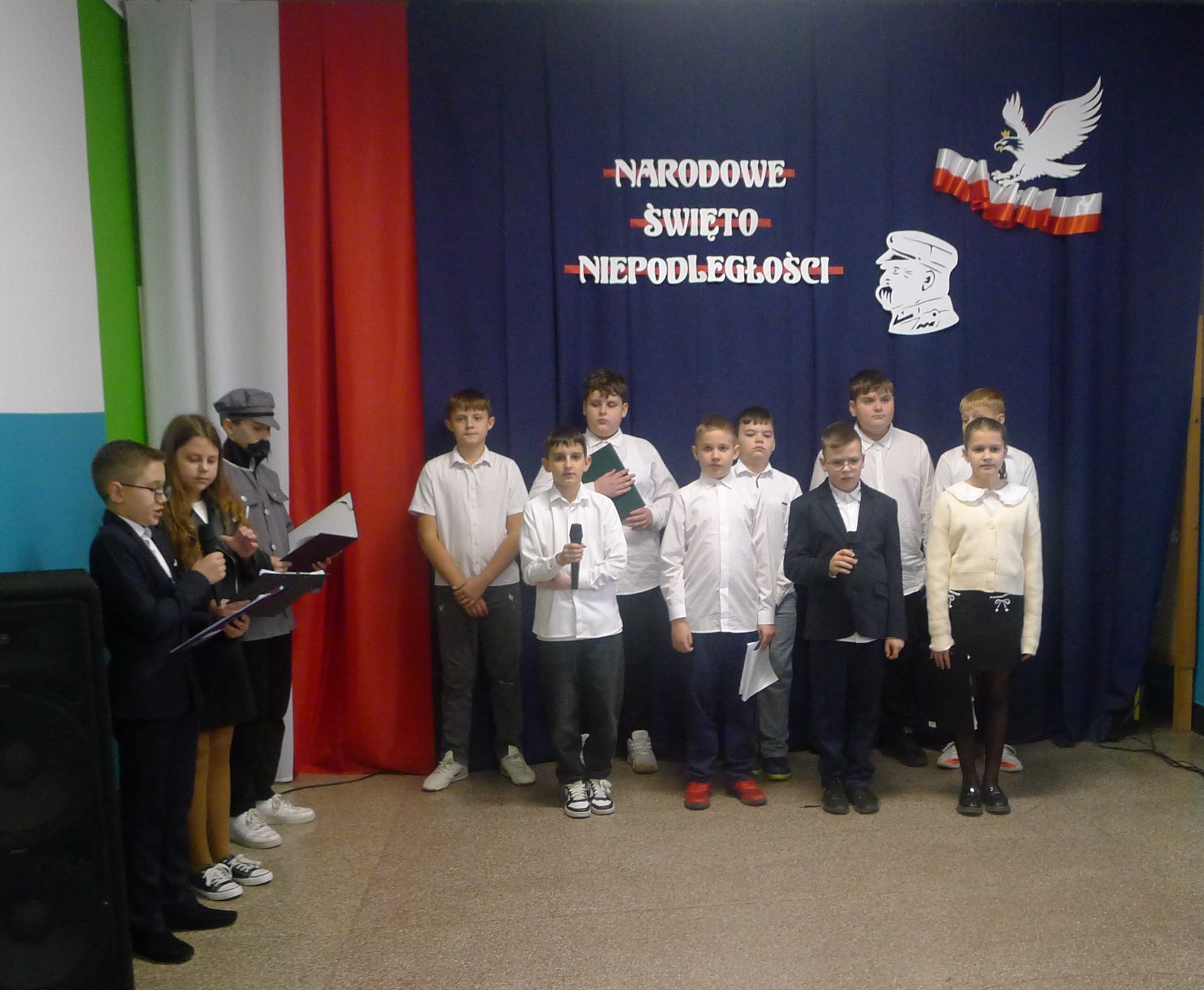 12 listopada w naszej szkole odbyła się uroczysta akademia upamiętniająca 107. rocznicę odzyskania przez Polskę niepodległości. Uczniowie z kl. V zaprezentowali montaż słowno-muzyczny, w którym przypomnieli najważniejsze wydarzenia z historii naszego kraju oraz oddali hołd bohaterom walczącym o wolność Ojczyzny. Całość uświetniły patriotyczne pieśni i recytacje wierszy. Uroczystość przebiegła w podniosłej atmosferze, a zgromadzeni uczniowie i nauczyciele z dumą uczcili ten wyjątkowy dzień w historii Polski.