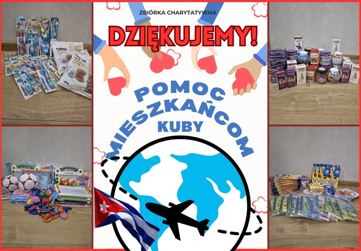 Zakończyliśmy zbiórkę na rzecz dzieci i mieszkańców Kuby. Dzięki ogromnemu zaangażowaniu rodziców, uczniów oraz nauczycieli udało się zakupić najpotrzebniejsze leki, witaminy, a także zabawki, kredki, malowanki, które trafią do najmłodszych.